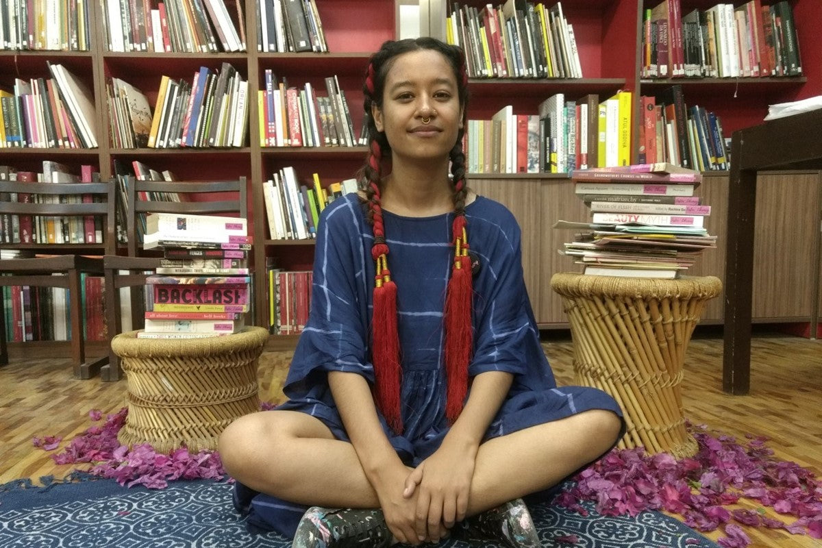 Sister Library is a permanent – albeit small – space in the Bandra neighbourhood of Mumbai – it houses 600 works of literature by women, including zines, graphic novels, fiction, nonfiction, and poetry, mostly from Thami’s own sprawling collection. Sister Library began as a travelling interactive artwork, which visited cities all over India, from Delhi to Pune, Goa to Bengaluru, and finally the Kochi-Muziris Biennale, which is where I stumbled across its pink shelves and inspiring mission. While there, I perused works by Audre Lorde, Virginia Woolf, Maya Angelou, Arundhati Roy and Gail Omvedt, alongside handmade zines by local women and girls. Thami has read women exclusively for the past five years, she tells Dazed: “Reading women has been fundamental to my practice, as it has filled me with strength – I wanted to share this with everyone.”