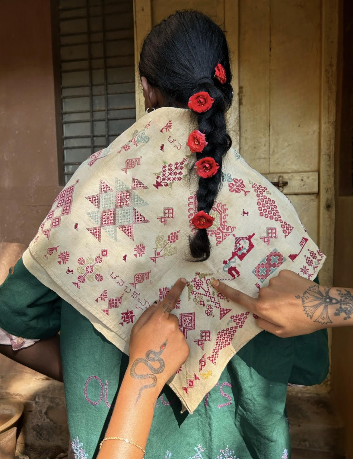 We created our collection with the women of Sakhi Saphalya in Dharwad, a community of artisans that are all aiming to revive and preserve dying crafts North Karnataka and go back to our roots to relive the stories of our ancestors