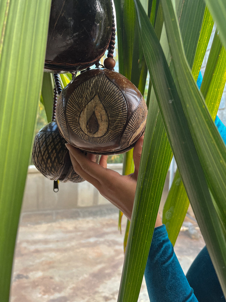 We worked with artisans in Kozhikode and Pondicherry to create these one-of-a-kind coconut shell mini bags, using recycled coconuts and other natural materials. Bringing life to a part of the coconut that is usually considered waste and thrown out. With more than 45% of India’s coconut coming from Kerala, we only thought it to be best to work with the most local artists in villages of Kerala, to make turn waste into highly-crafted and- carved coconut bags, and tell their stories to the world.