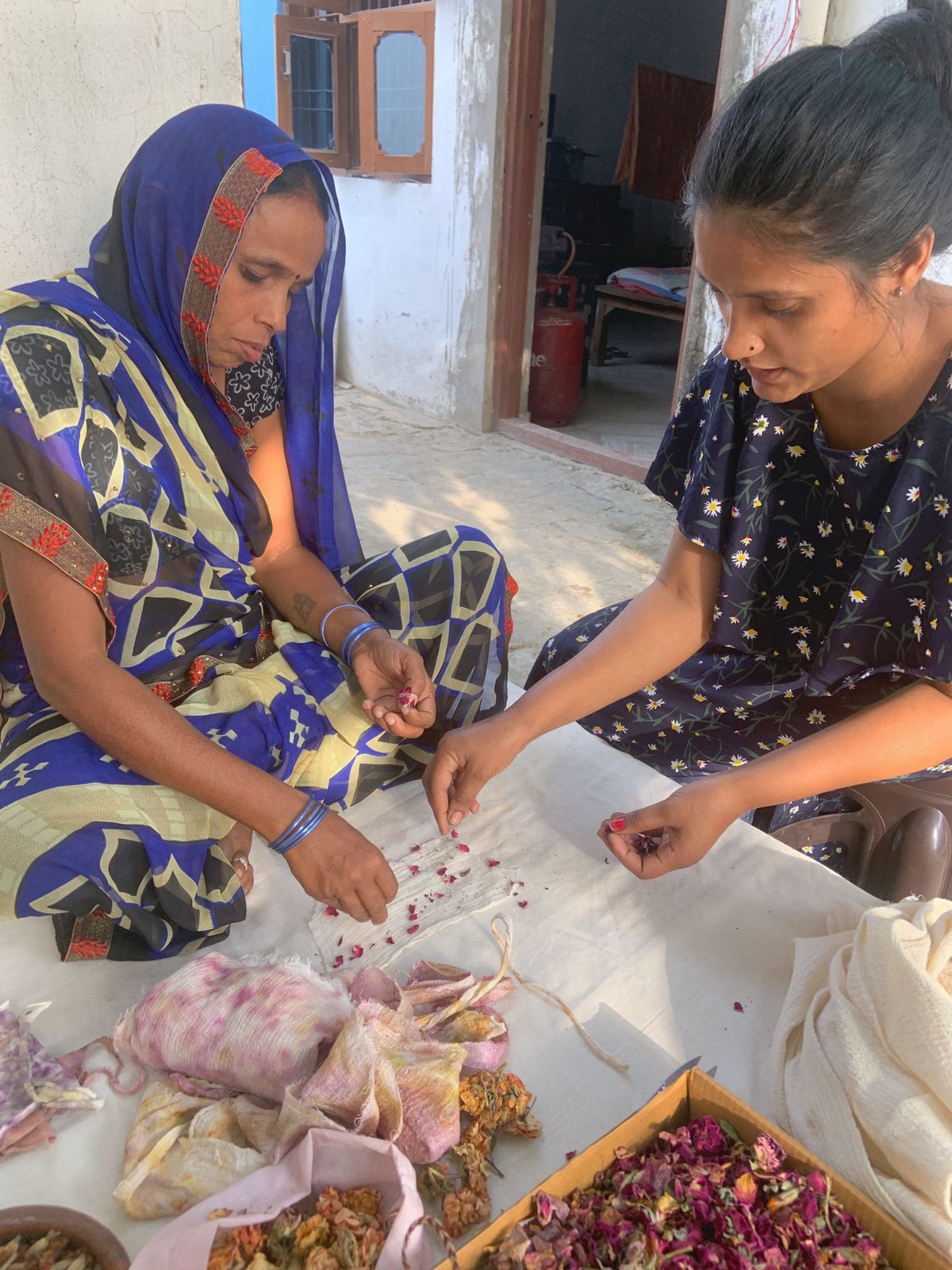 Since we are dedicated towards creating exclusive handmade pieces, engaging local women helps us manifest our vision of slow making, natural dyeing and hand stitching. Mentoring and training local women with weekly workshops - of natural dyeing along with embroidery, packaging, sewing, paper recycling etc.
