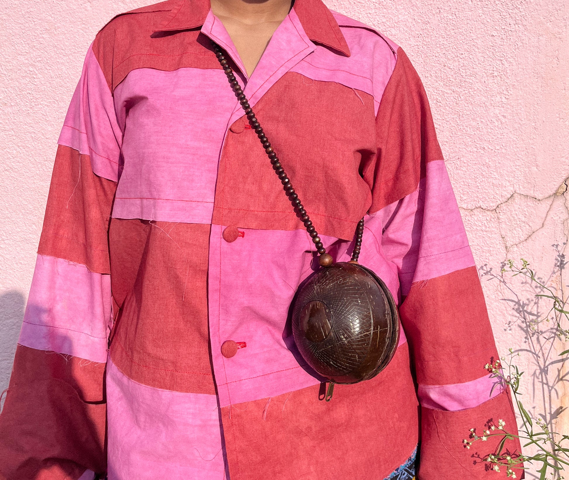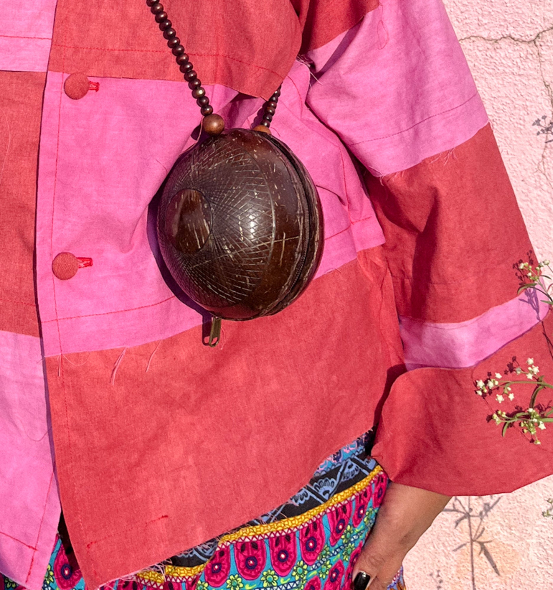 These bags are hand crafted by artisans in Kozhikode and Pondicherry using the wealth of their generational knowledge and skills. Style these beautifully hand crafted upcycled coconut bags with your everyday outfits or elevate your conscious clothing with this long single strapped coconut shell bag.