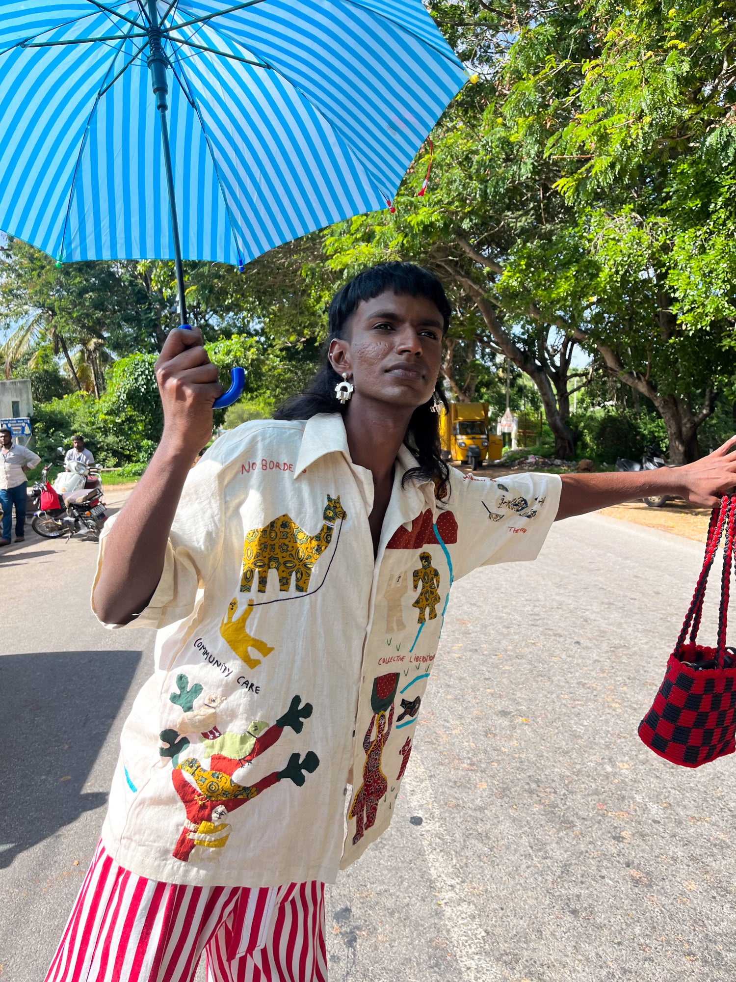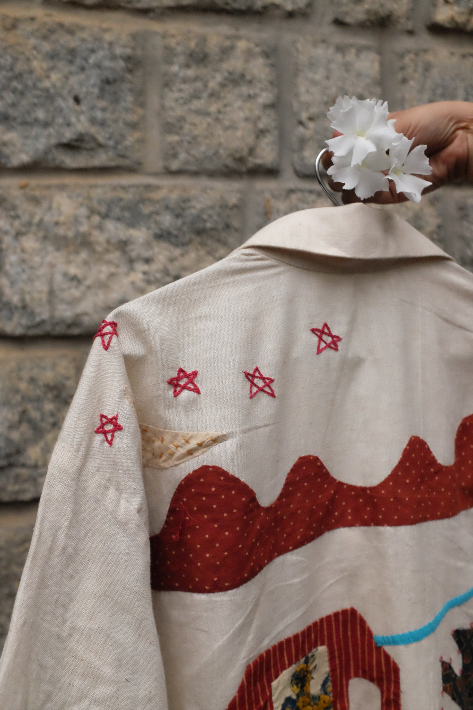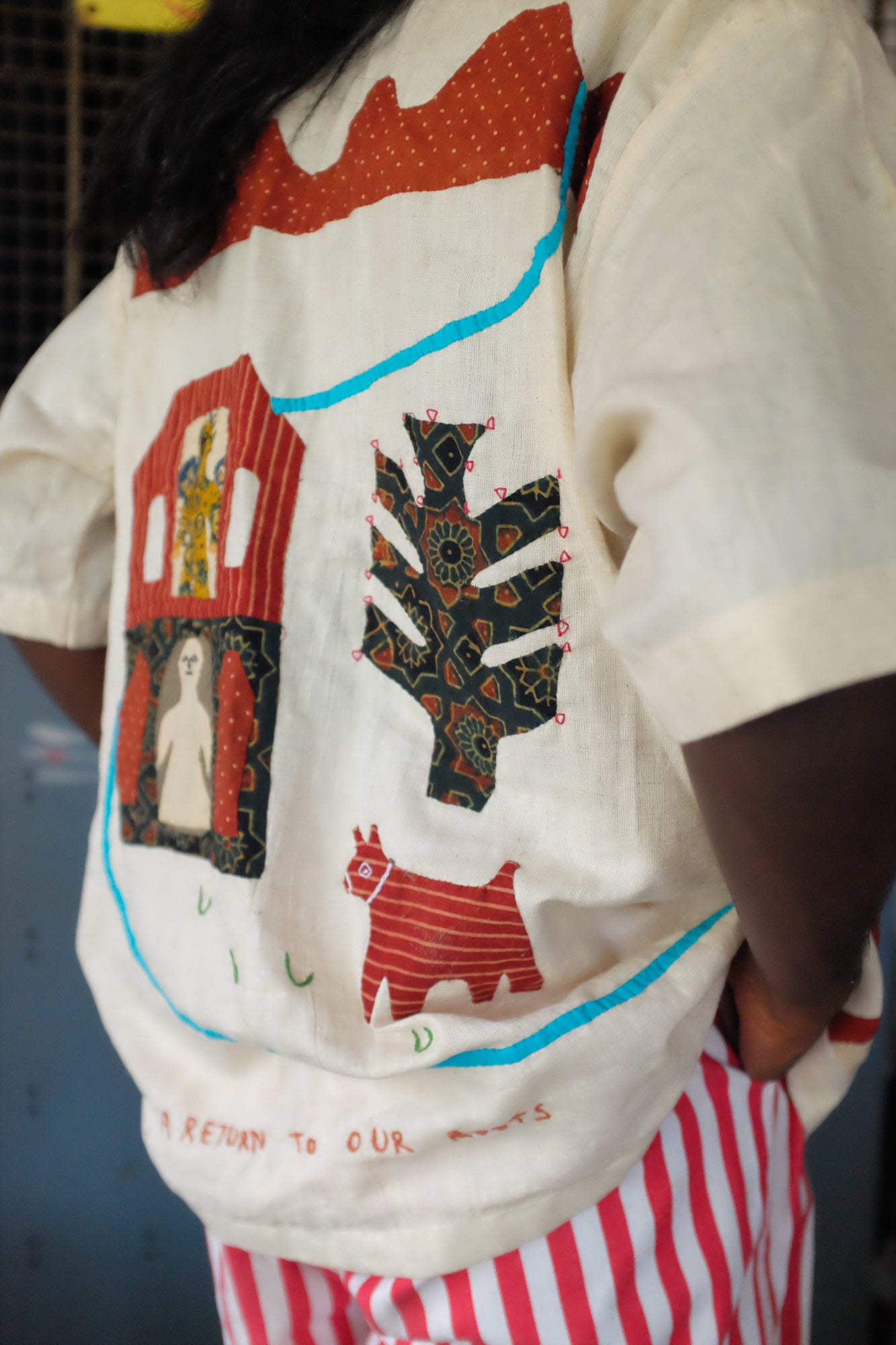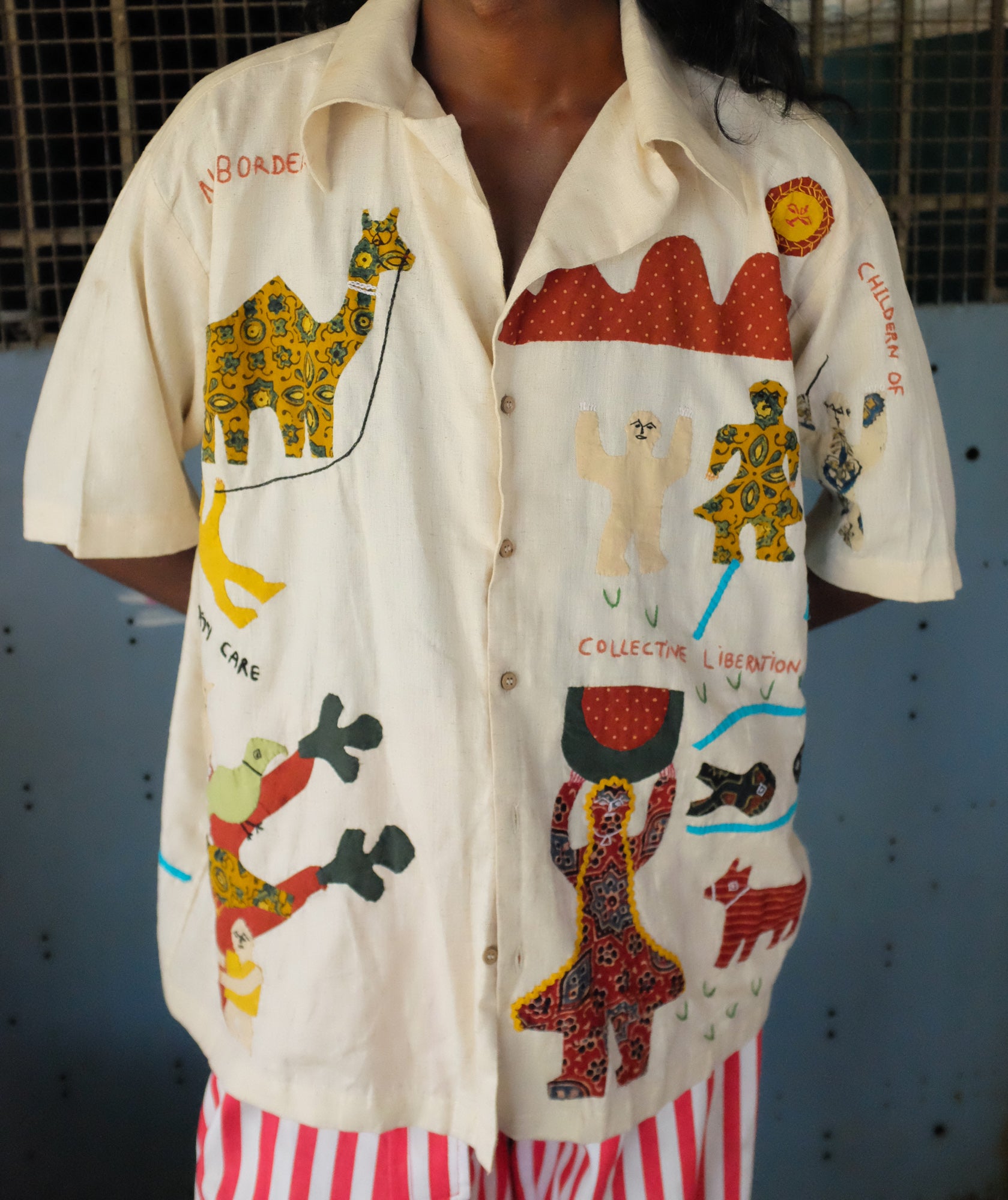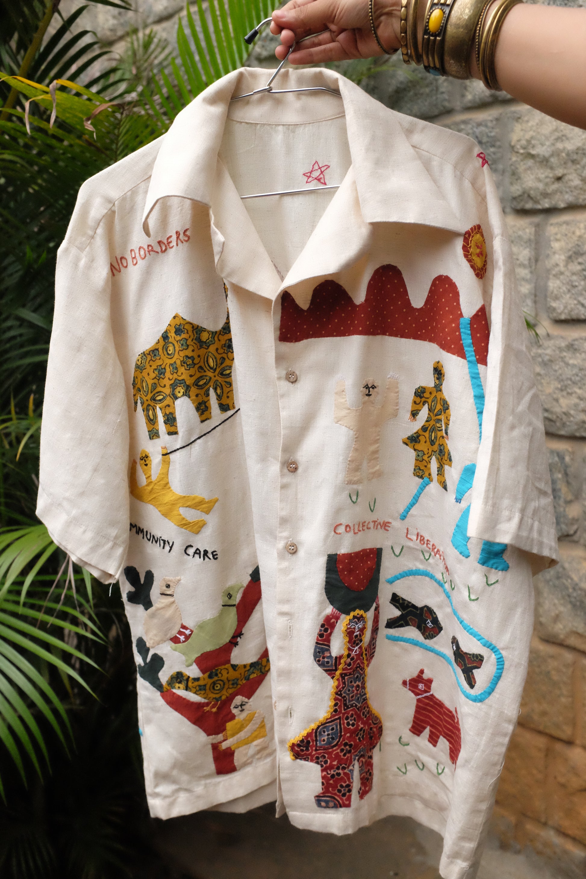 Experience the unique blend of tradition and modern storytelling with our Unisex Patchwork Applique Shirt. Crafted in collaboration with our artisan friends from Kutch, Gujarat, this shirt showcases the ancient craft of Applique patchwork in a contemporary design. Each motif is a visual narrative, co-designed with our artisans, reflecting themes of community, justice, and collective liberation.