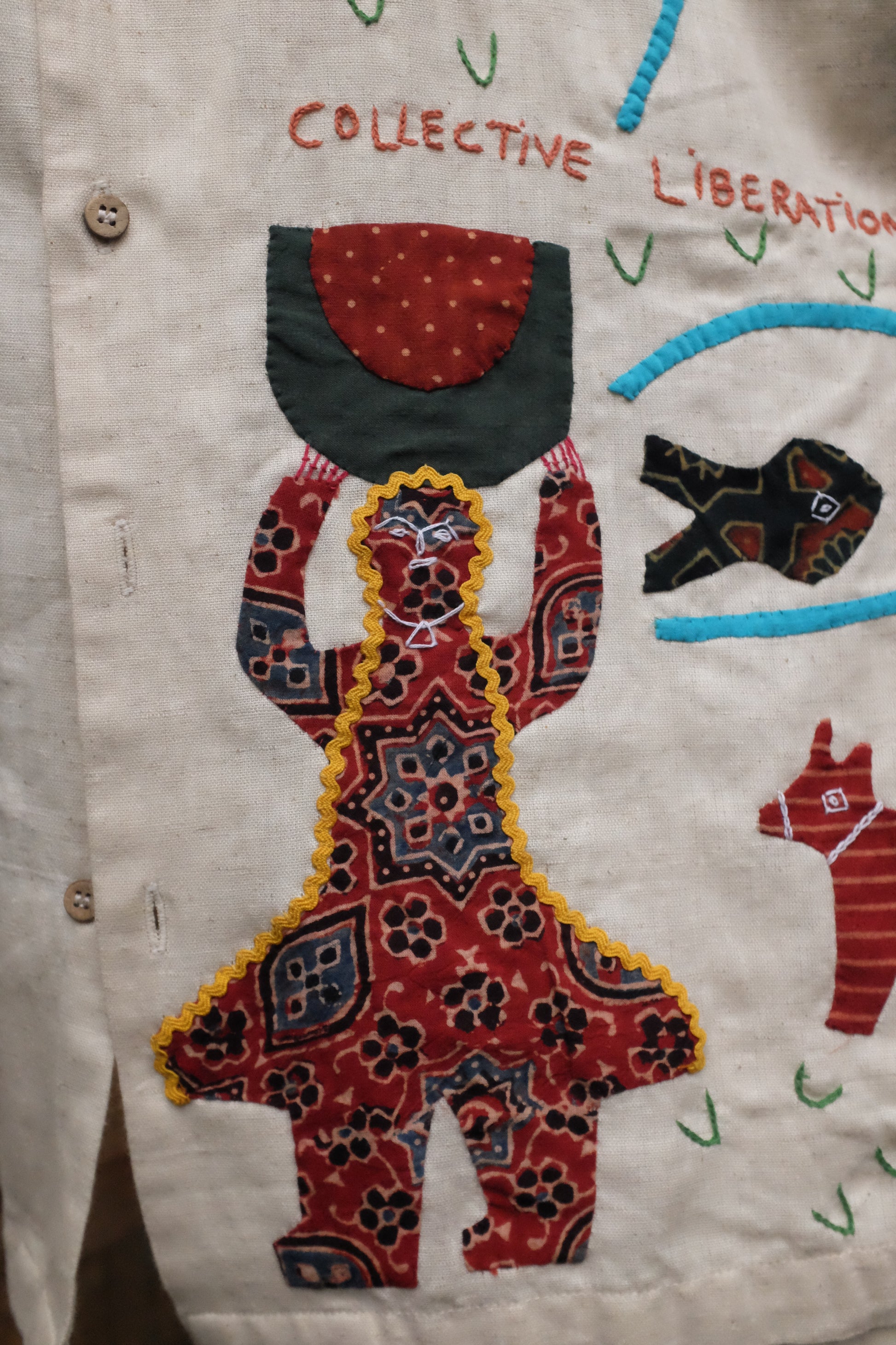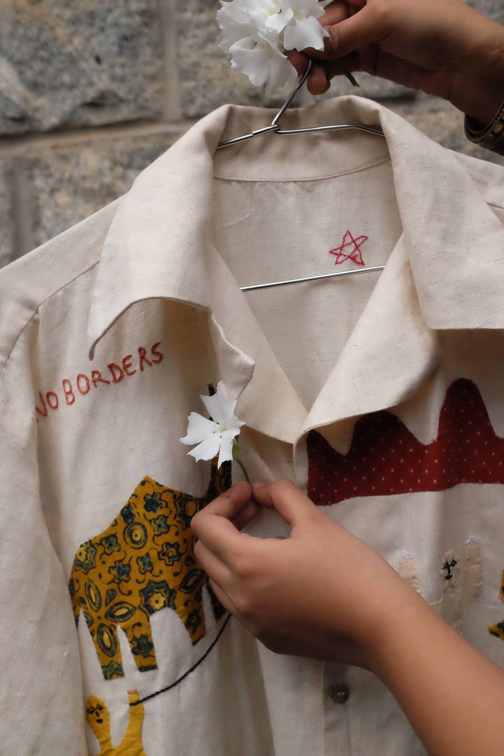 Why You'll Love It: This Patchwork Applique Shirt is more than just a garment; it's a canvas of stories and symbols of resistance and solidarity. Each motif is placed with intention, representing our collective effort to create a better world. Wear it as a statement of your values and support for artisan craftsmanship.