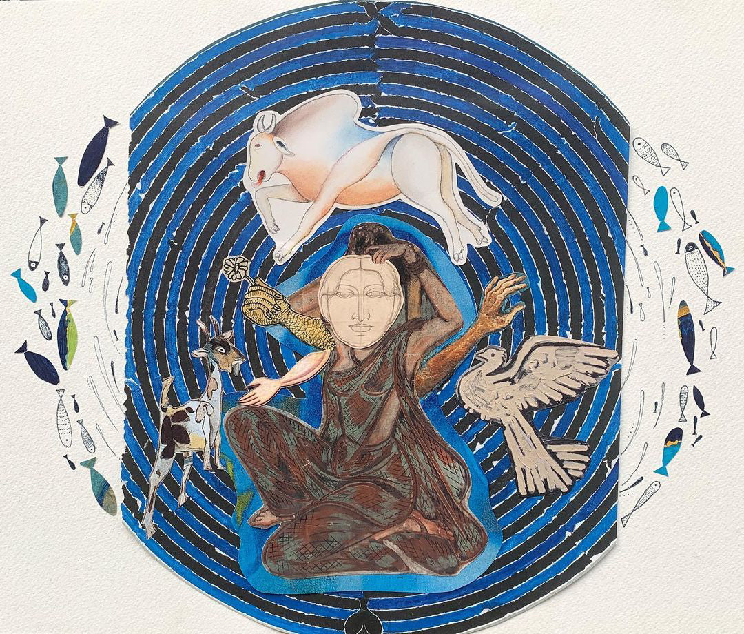 Each collage is a one-of-a-kind composition made entirely from cut paper and found materials. You’re invited to share a few keywords, colors, or symbols you’d like and the artist will interpret them into a layered, tactile piece created just for you. Each custom piece will take 8 weeks to create and ship.