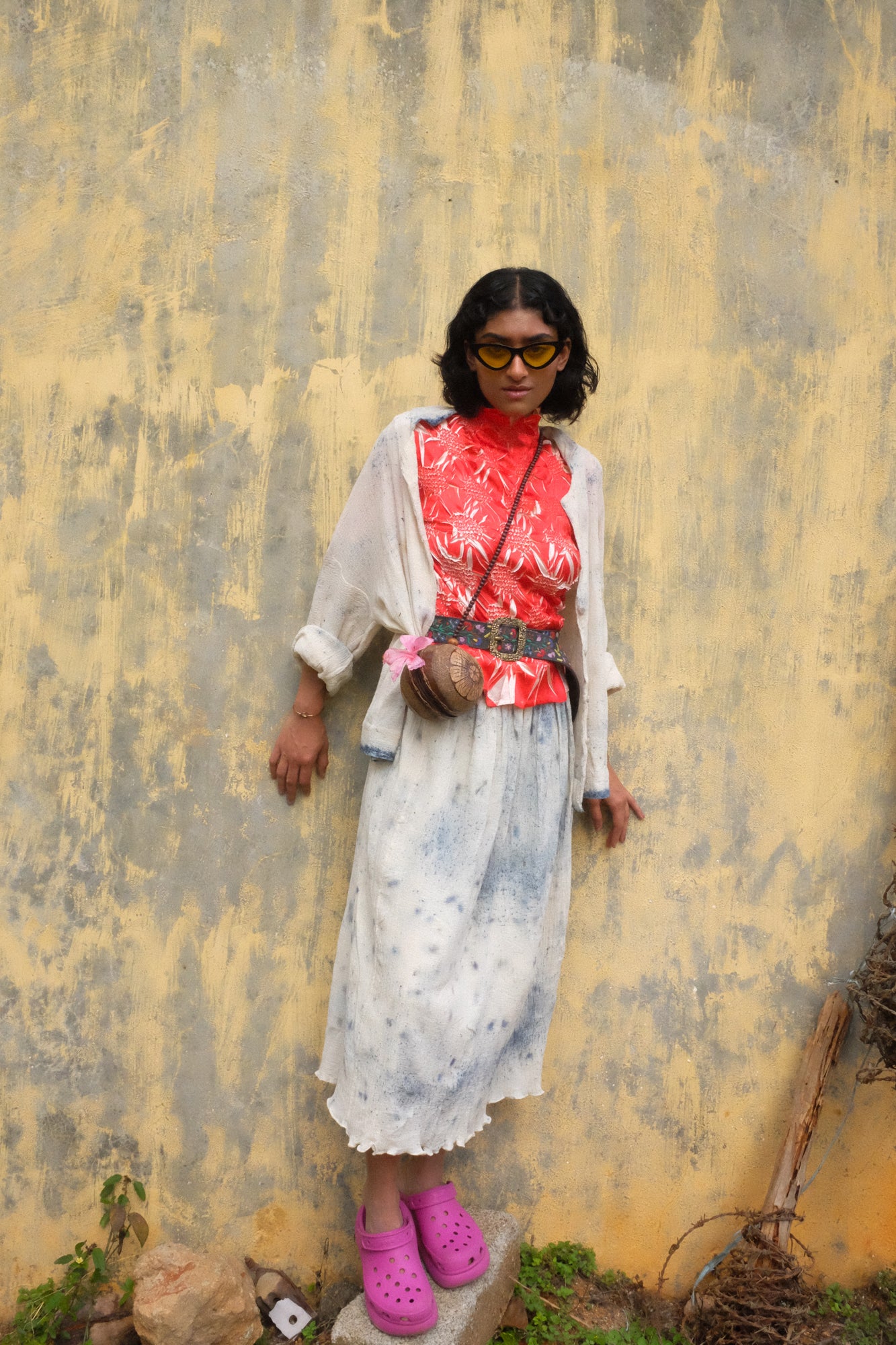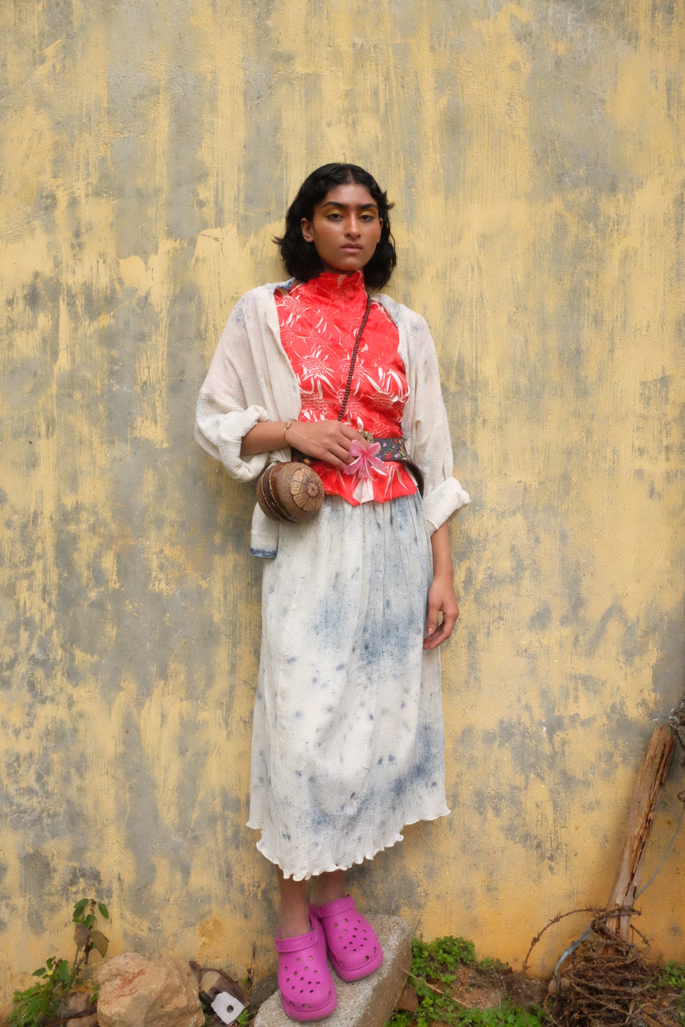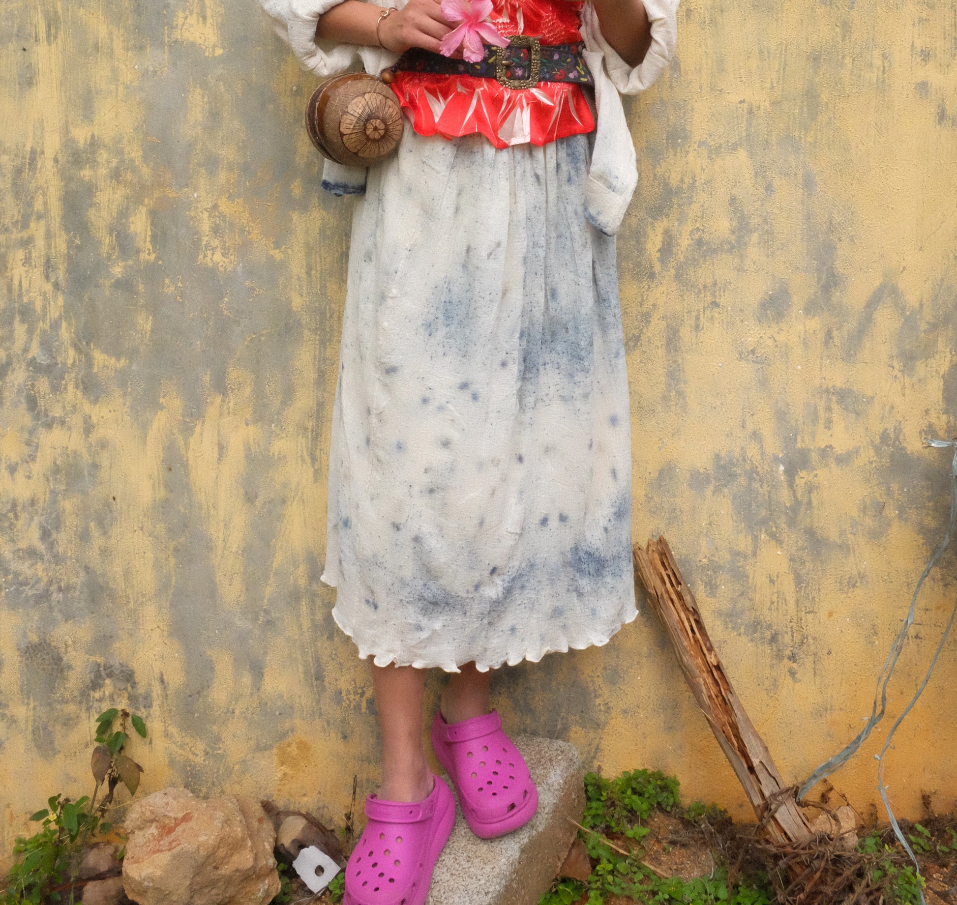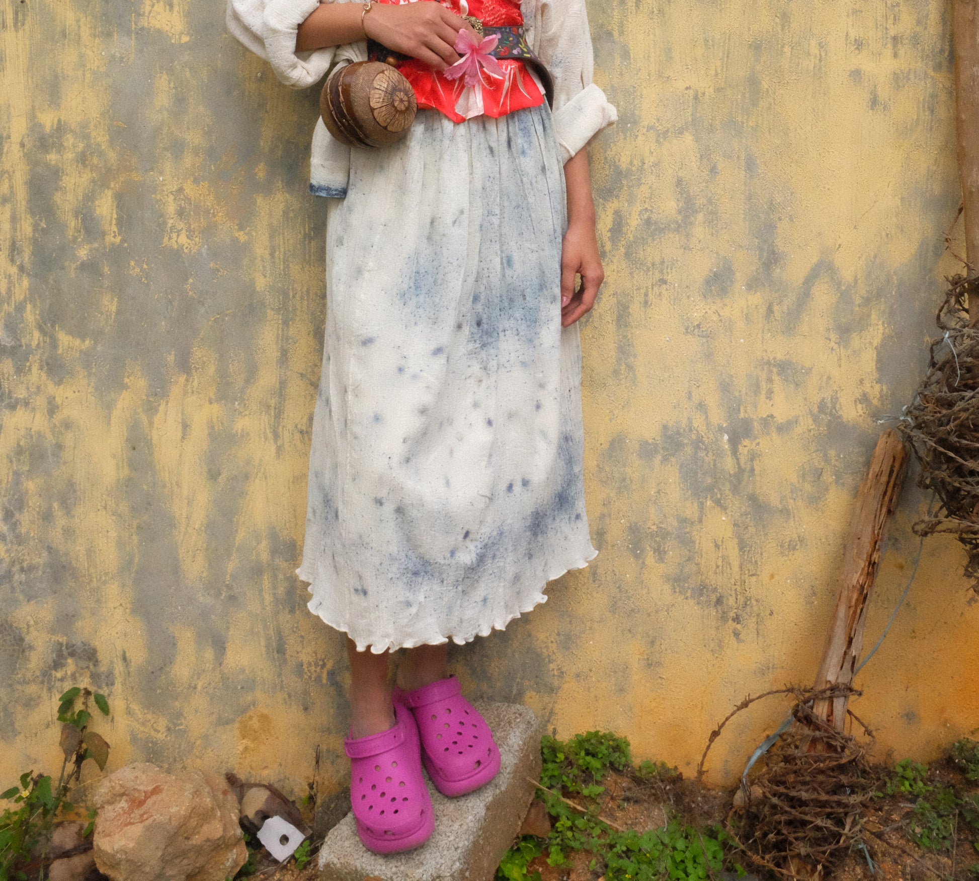 A free-flowing skirt that reminds us of rainy days and monsoon. Coloured with natural indigo and butterfly pea flowers.
