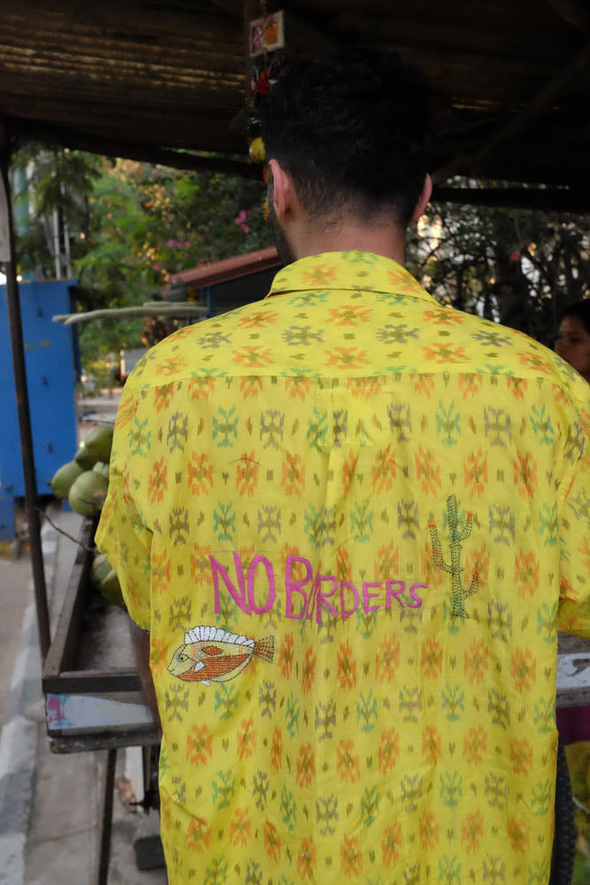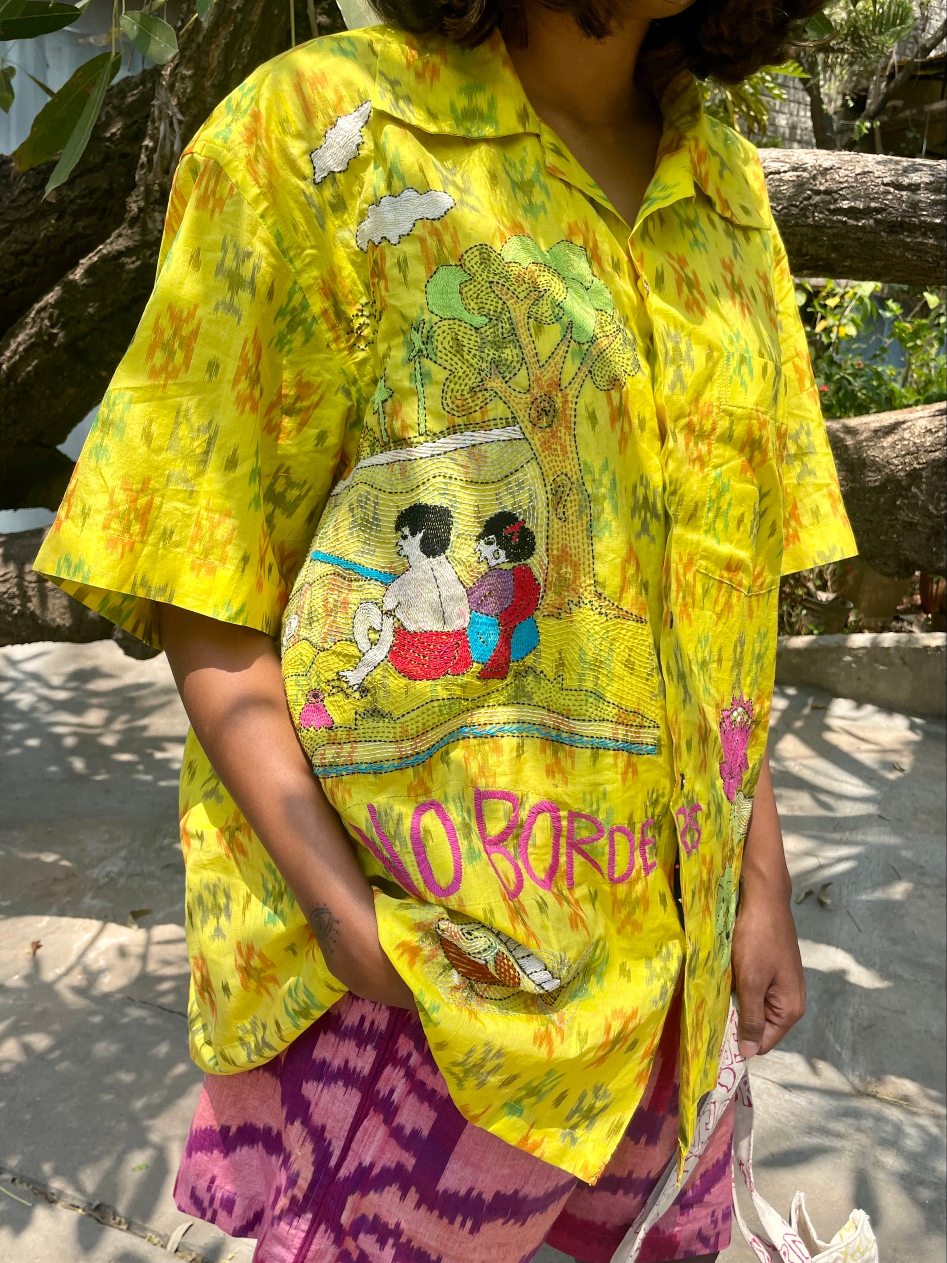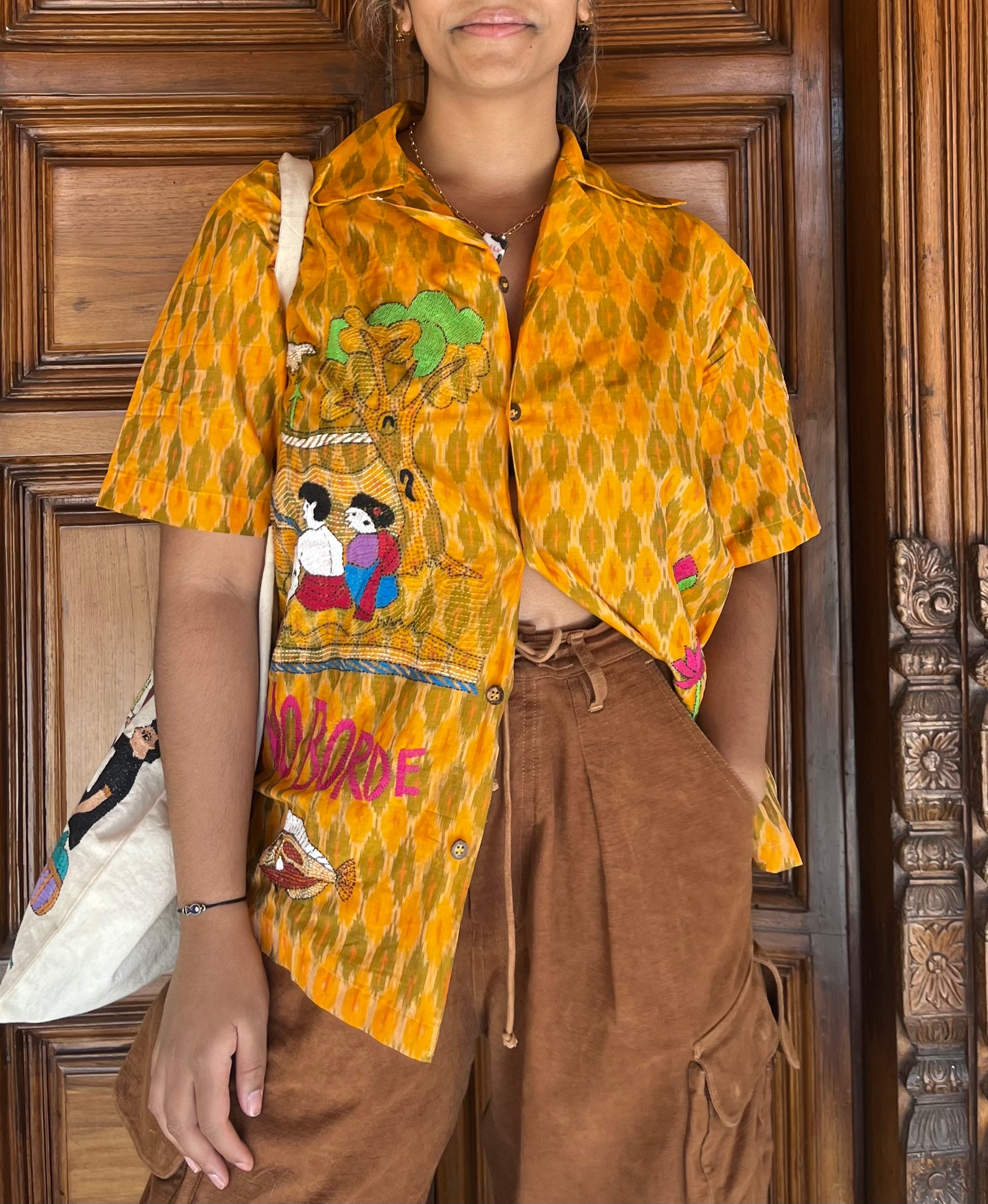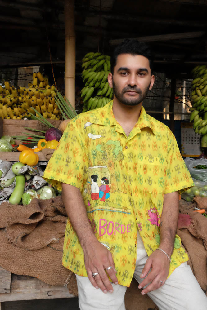 Our yellow and orange Ikat x Kantha shirt is a beautiful overlying of two Indian indigenous crafts encased in a lovestory from Village Nanoor in Bengal.