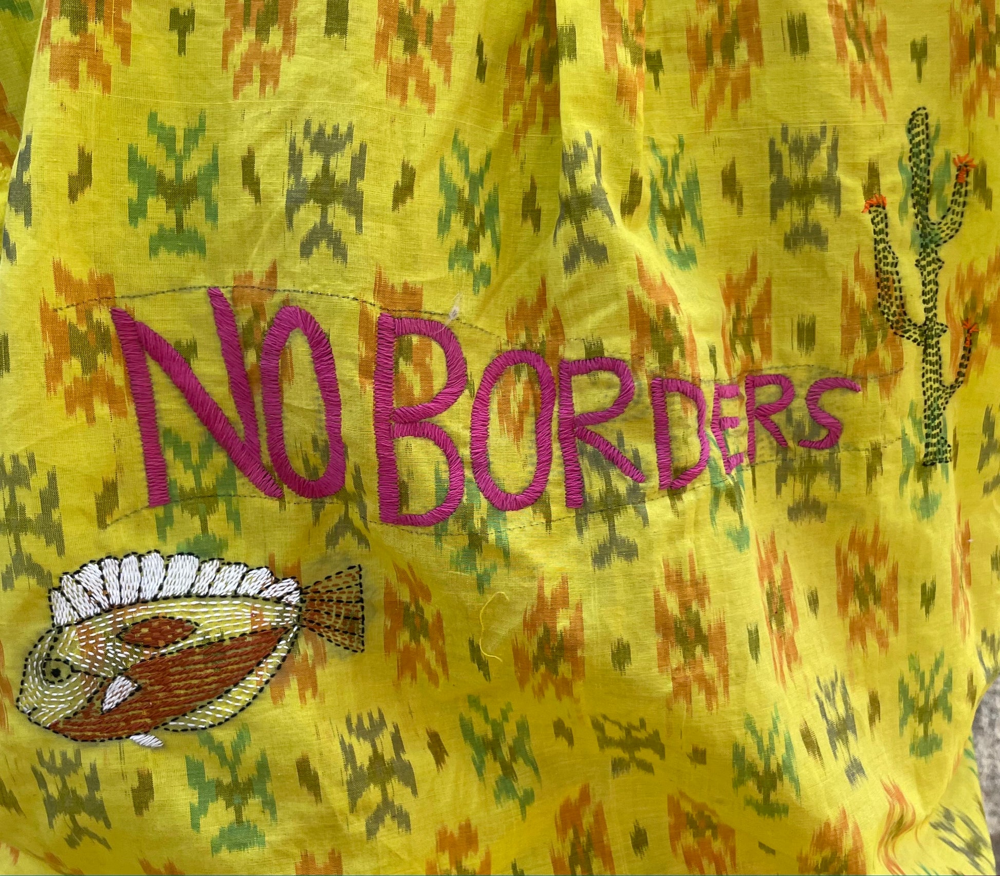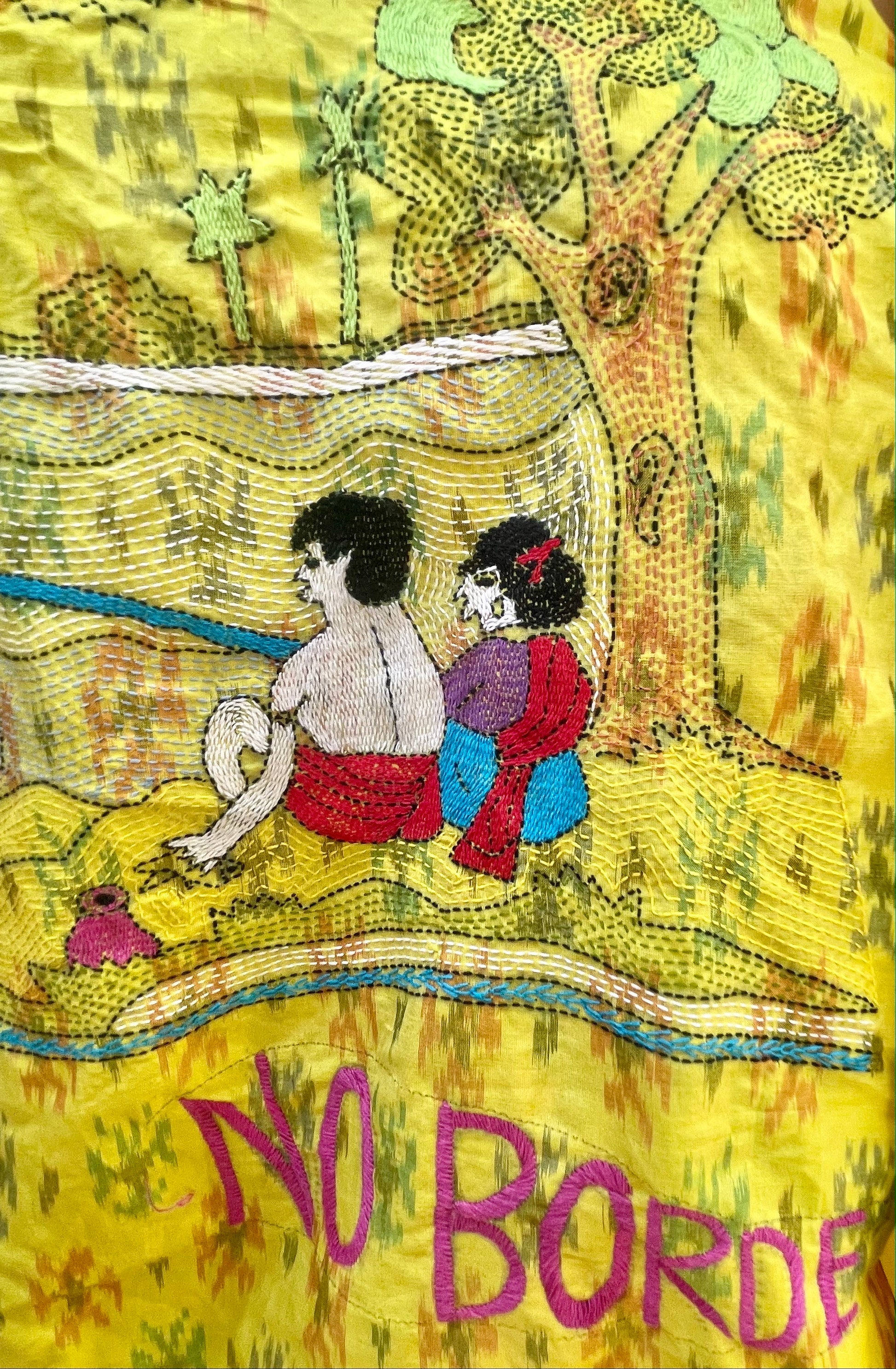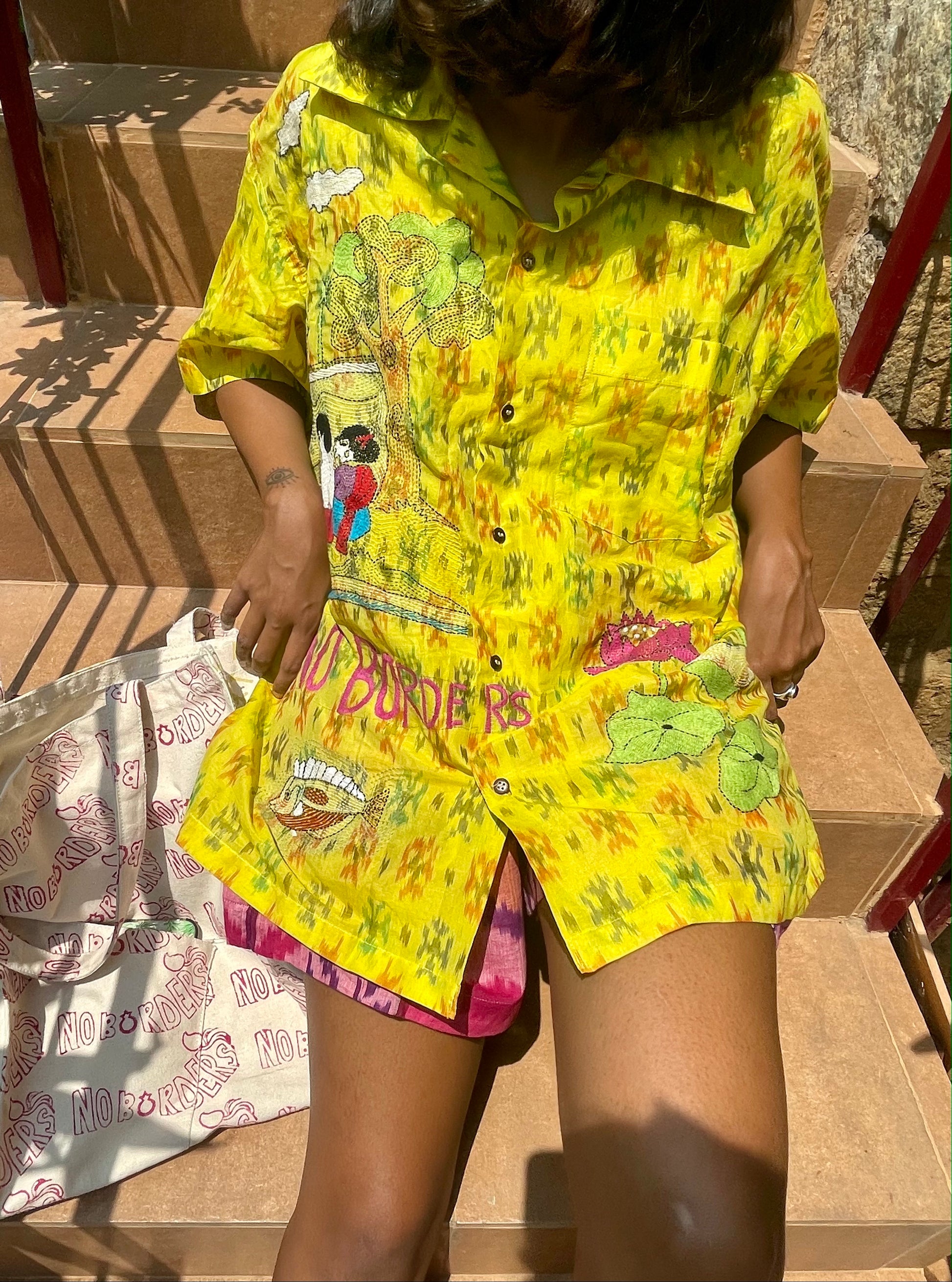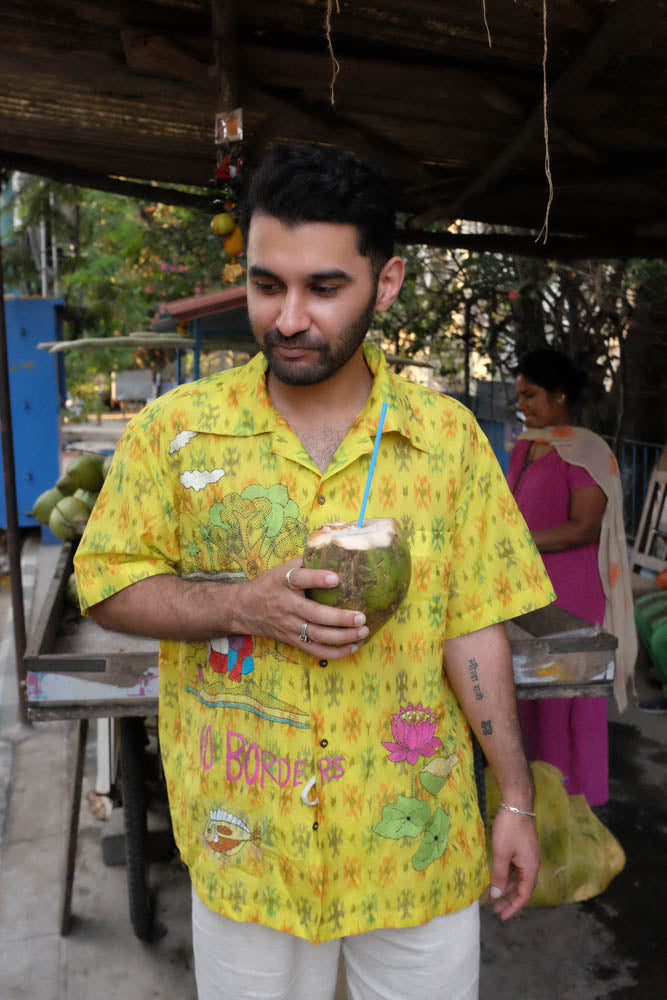 Our yellow and orange Ikat x Kantha shirt is a beautiful overlying of two Indian indigenous crafts encased in a lovestory from Village Nanoor in Bengal.