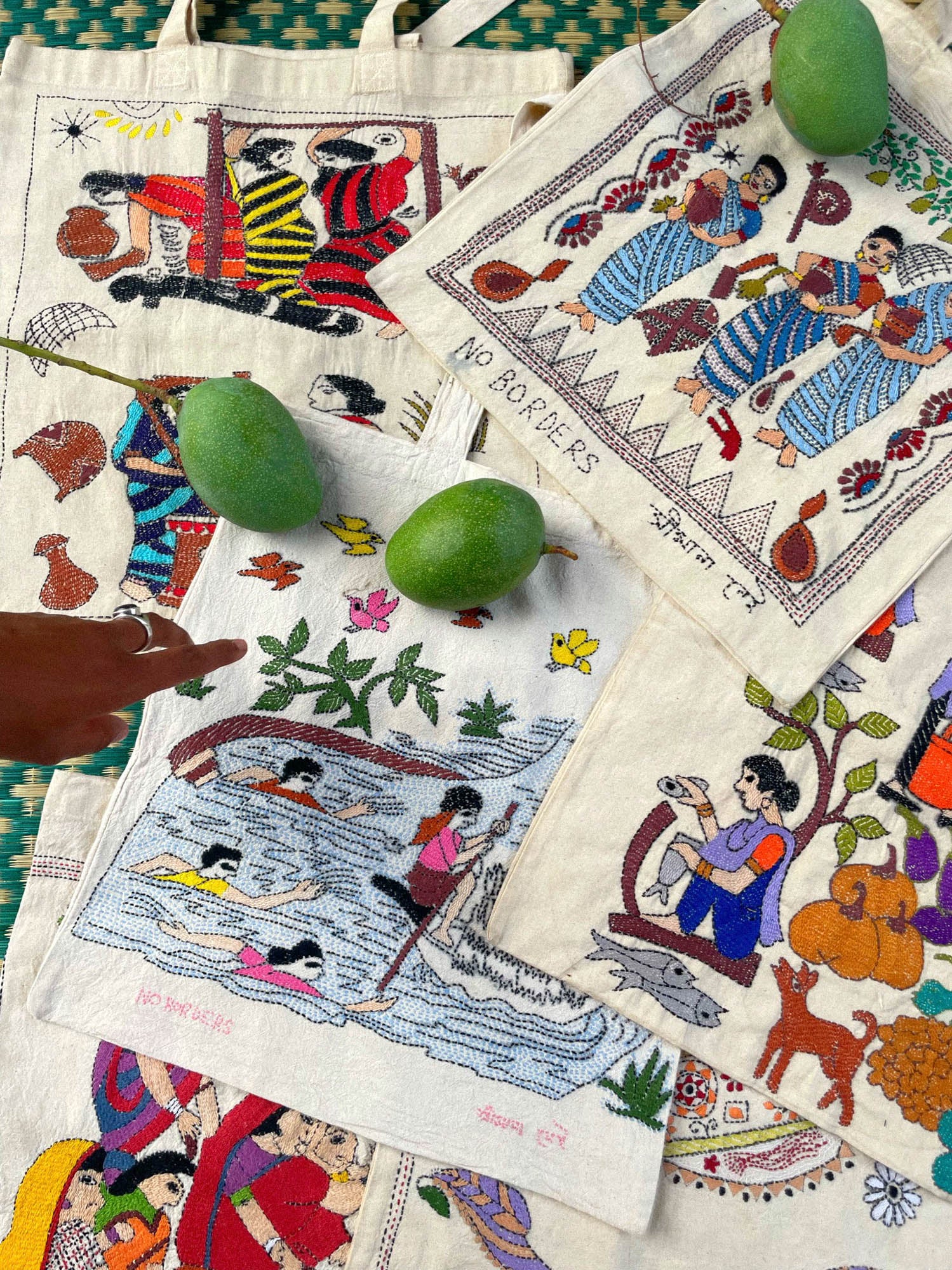 These artworks have been inspired by the Kantha artist Surayia Rahman, a revolutionary artist in Bangladesh.