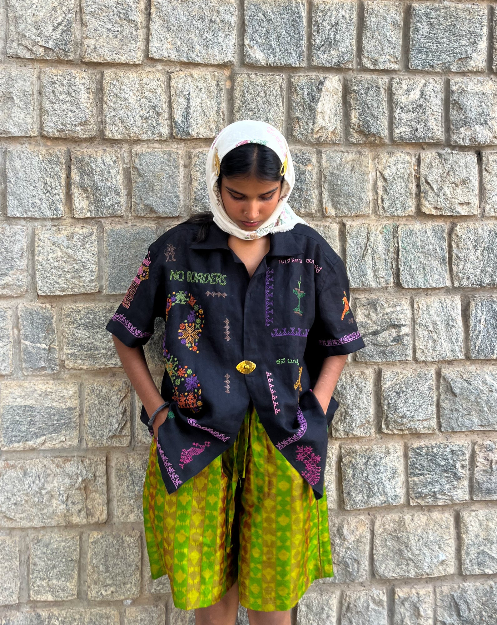 Experience the fusion of traditional craftsmanship and contemporary design with our Oversized Kasuti Black Shirt. This masterpiece, reimagined with the expertise of our artisans in Dharwad, Karnataka, celebrates the roots and stories of our hometown through the intricate art of Kasuti embroidery ๐ธ๐๐น