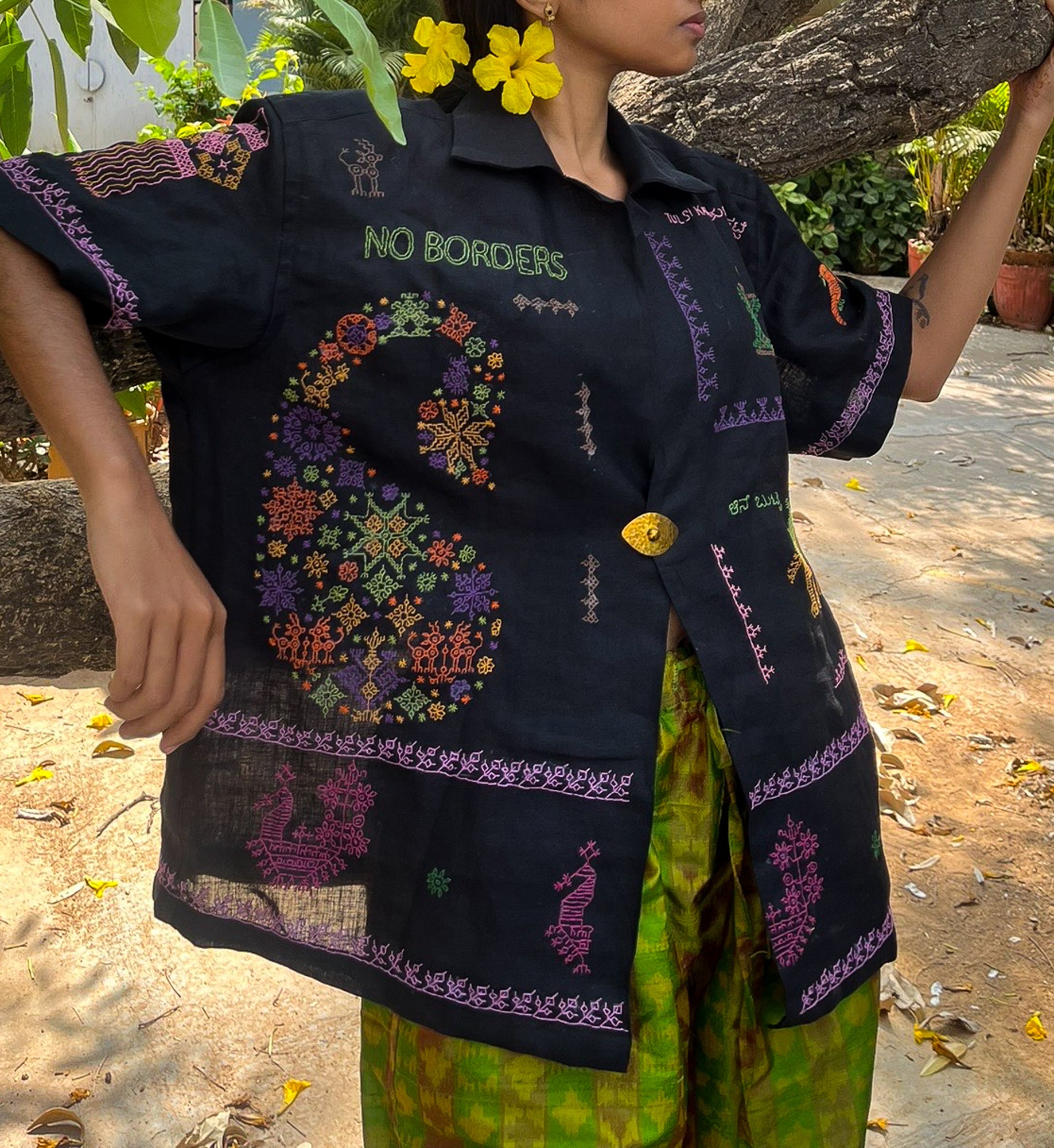 Why you'll love it - A piece that not only showcases exquisite craftsmanship but also supports the empowerment of women artisans. Wear a story of tradition, culture, and community, beautifully woven into every stitch ๐งต๐ปOversized cotton shirt with boxy and relaxed with
