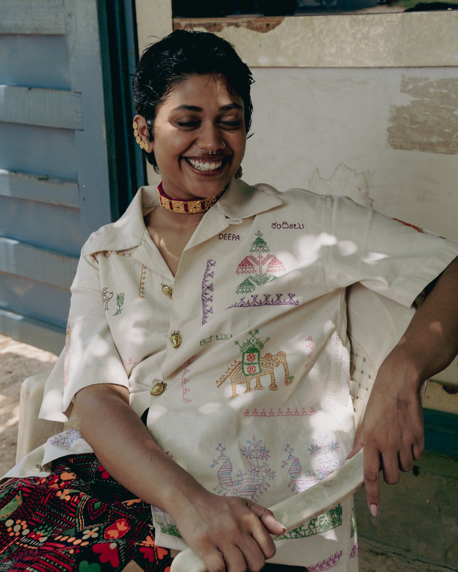 The embroidery was co-created with our women at Sakhi Saphalya, a non- profit that works in partnership with skilled women from neighbouring villages to empower them with the Kasuti craft ✨ We also got to bring our love for hand-crafted jewellery into these very special pieces by collaborating with Bhavya Ramesh on one-of-a-kind brass buttons made into the mangoes and chillies, all the way from Jaipur, Rajasthan 🛖A Return to our Roots - Hometown Shirt in Natural White