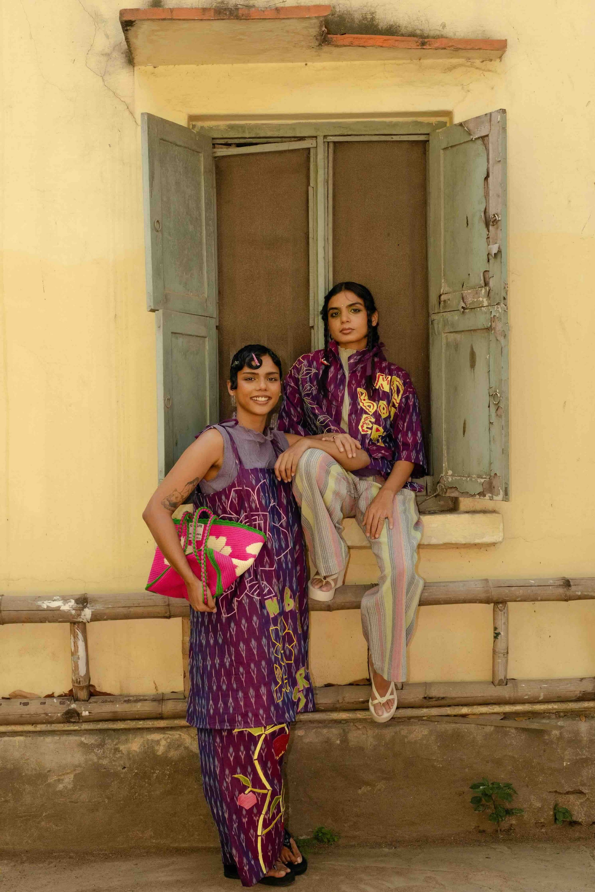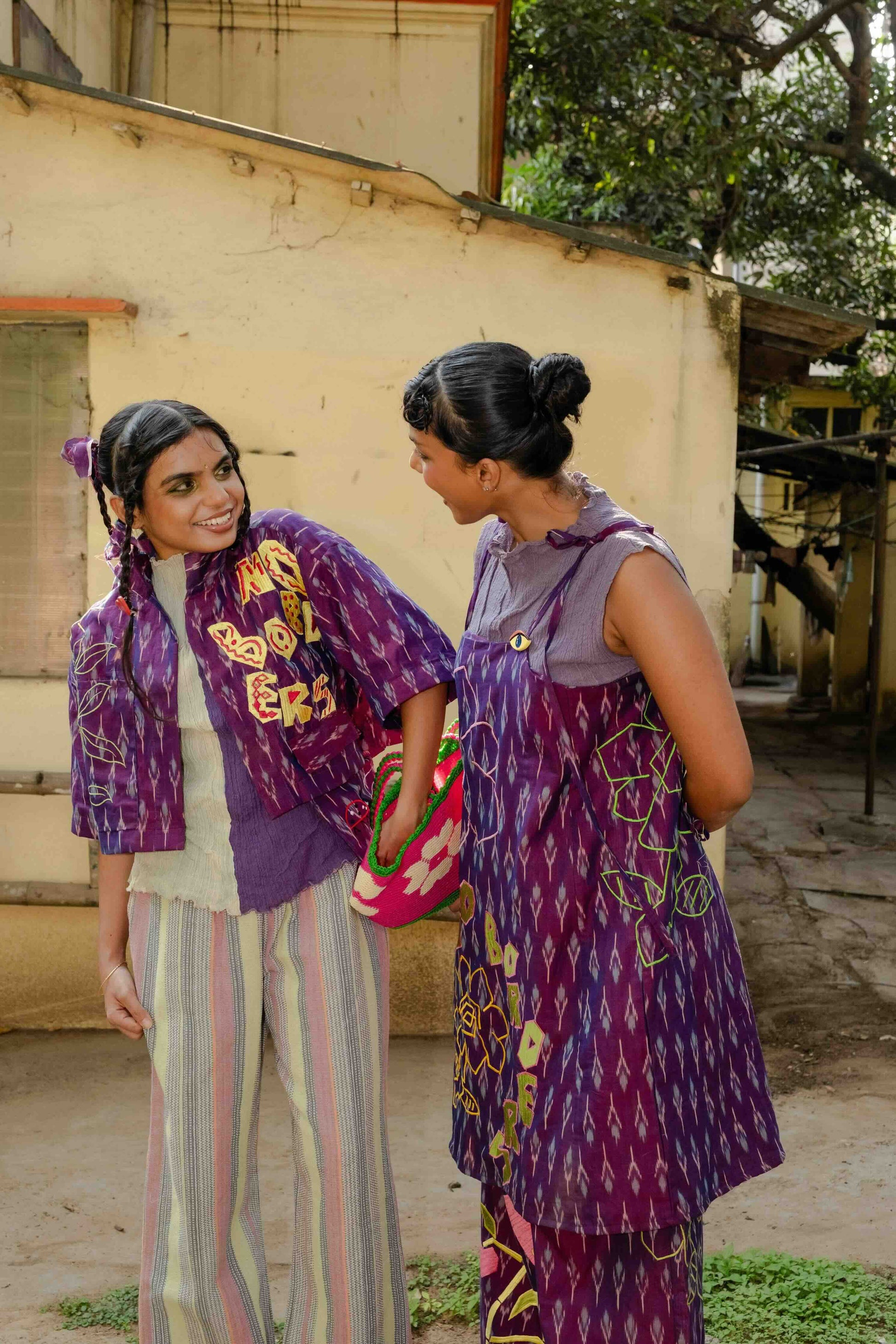 A playful summer mini drop reimagining Telangana's ancient Ikat weave with doodles, bright colors, and our signature purple in a rich, tie-dyed cotton š±šø