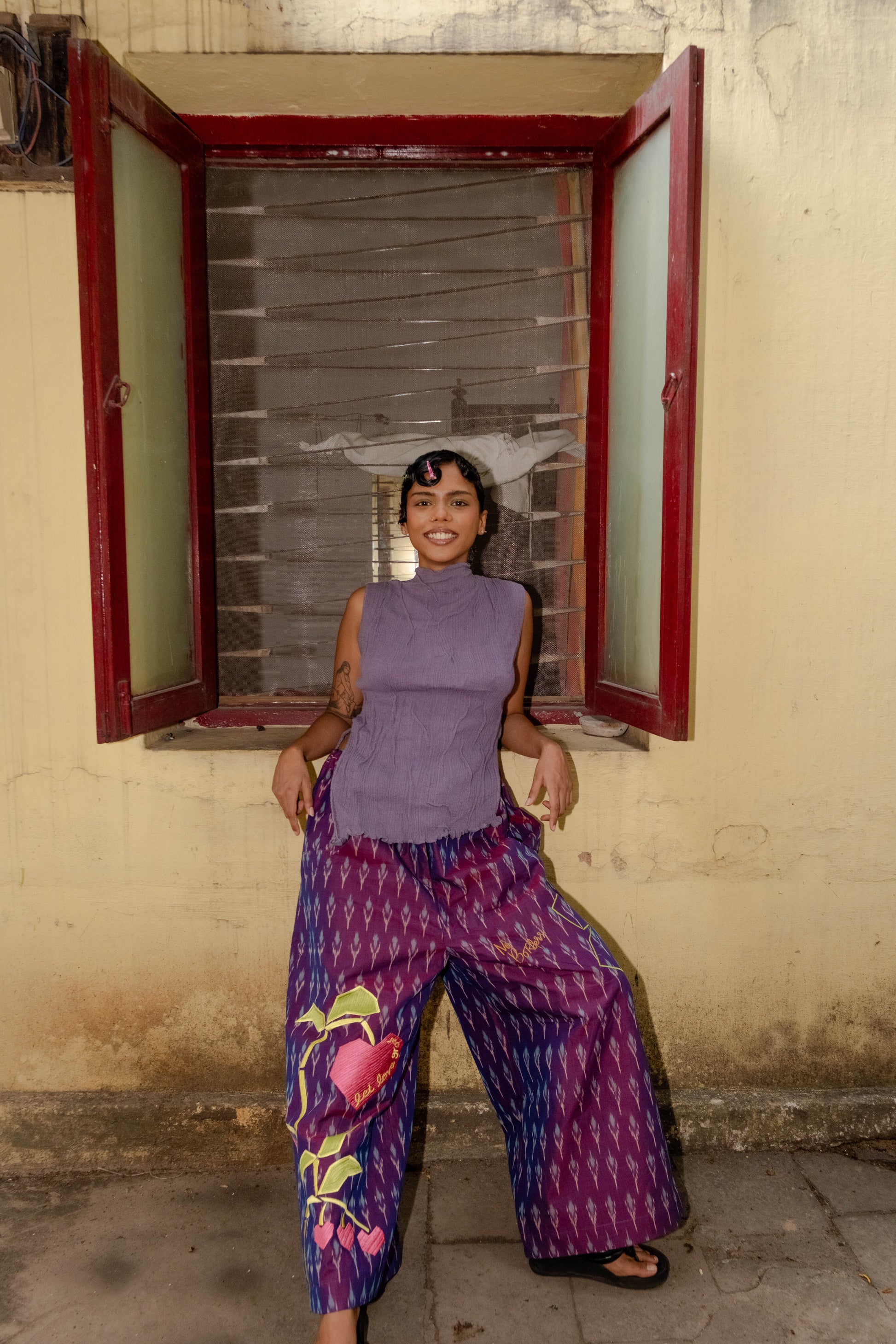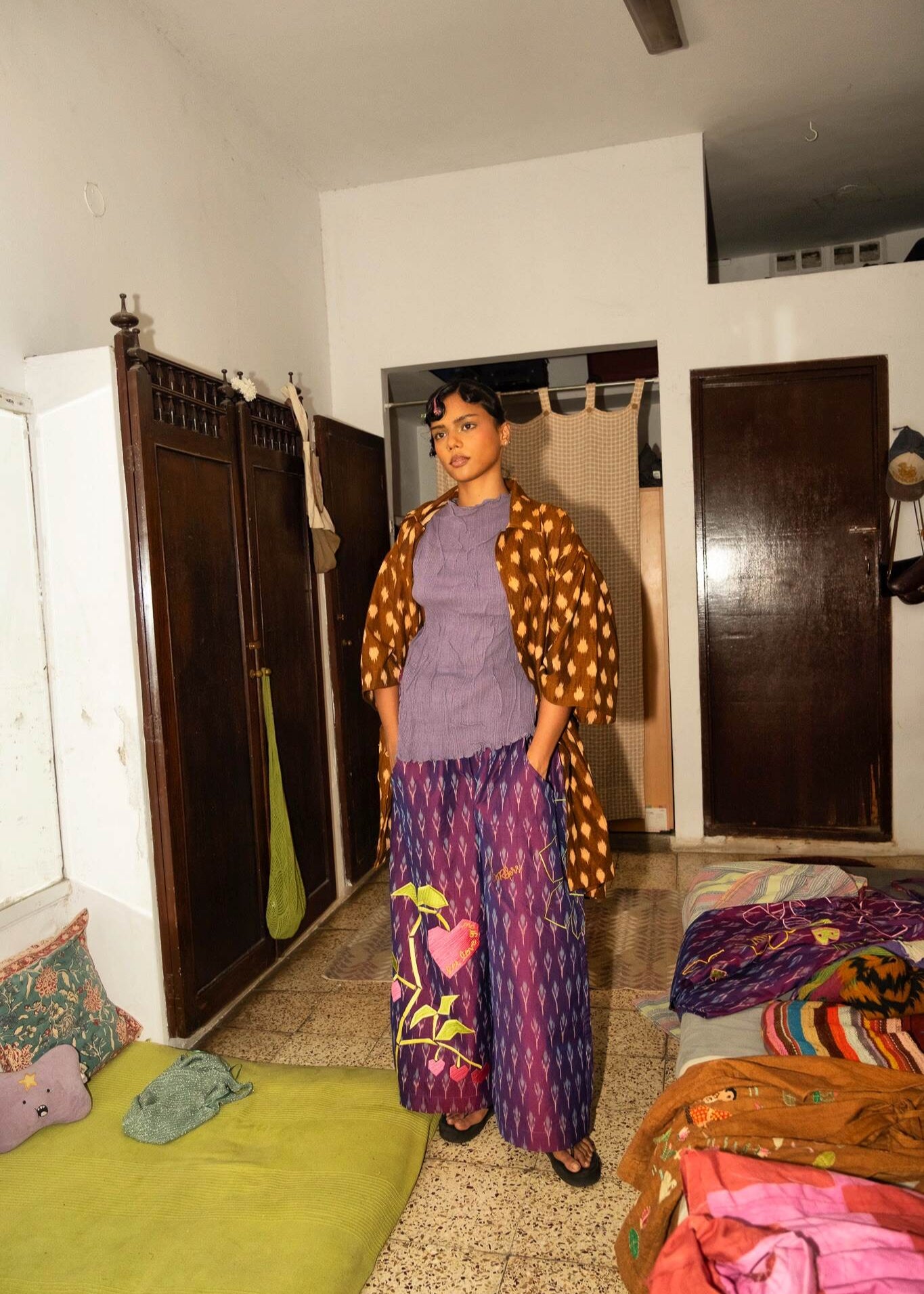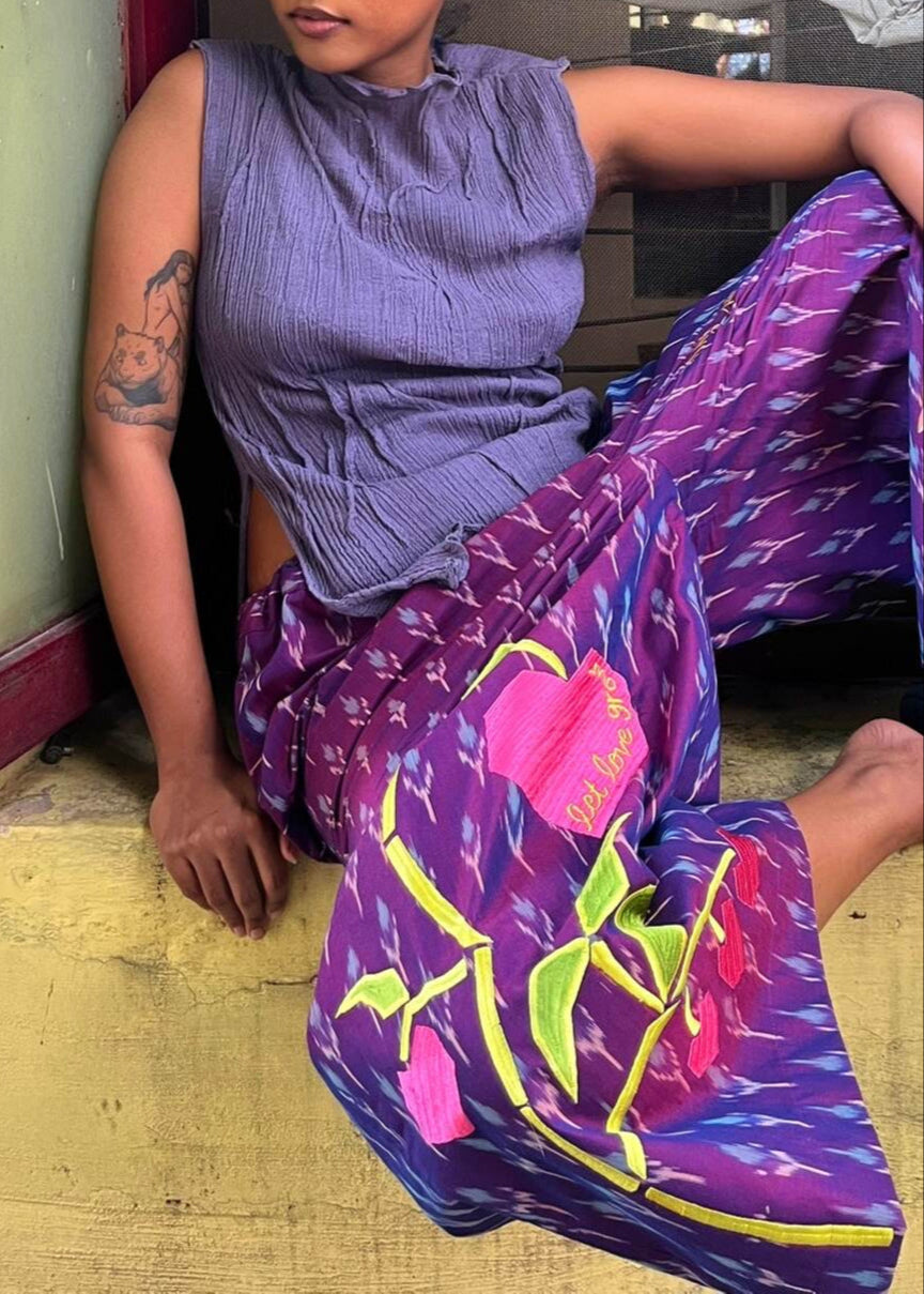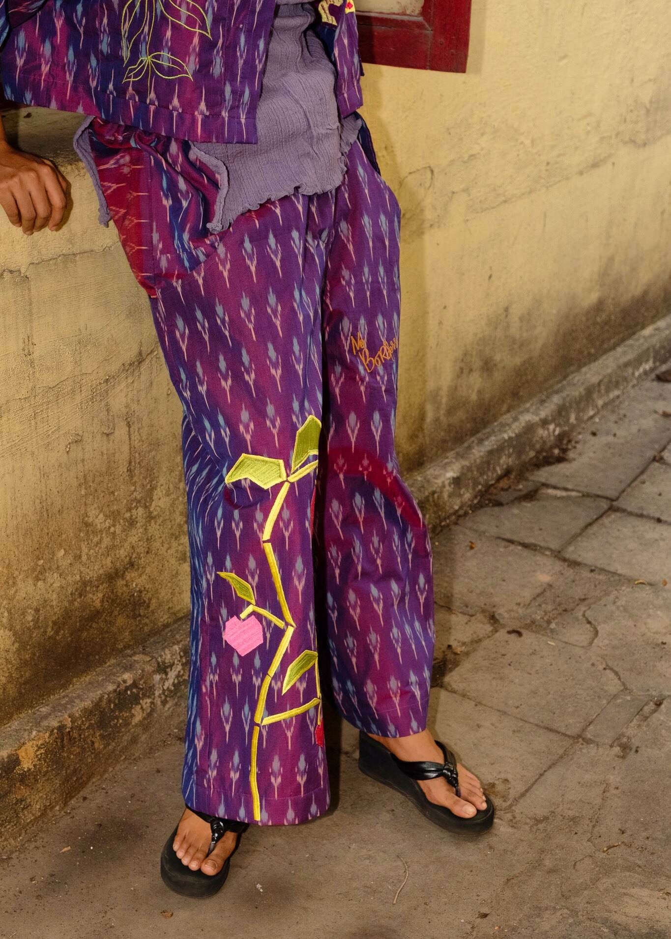 Our "Let Love Grow" Ikat Trousers, is the summer piece you just need to have! While the ikat fabric tells the story of ancestors m, the contrasting but lovable embroidery work on the piece depicts the fun loving energy we have for crafts 🌸