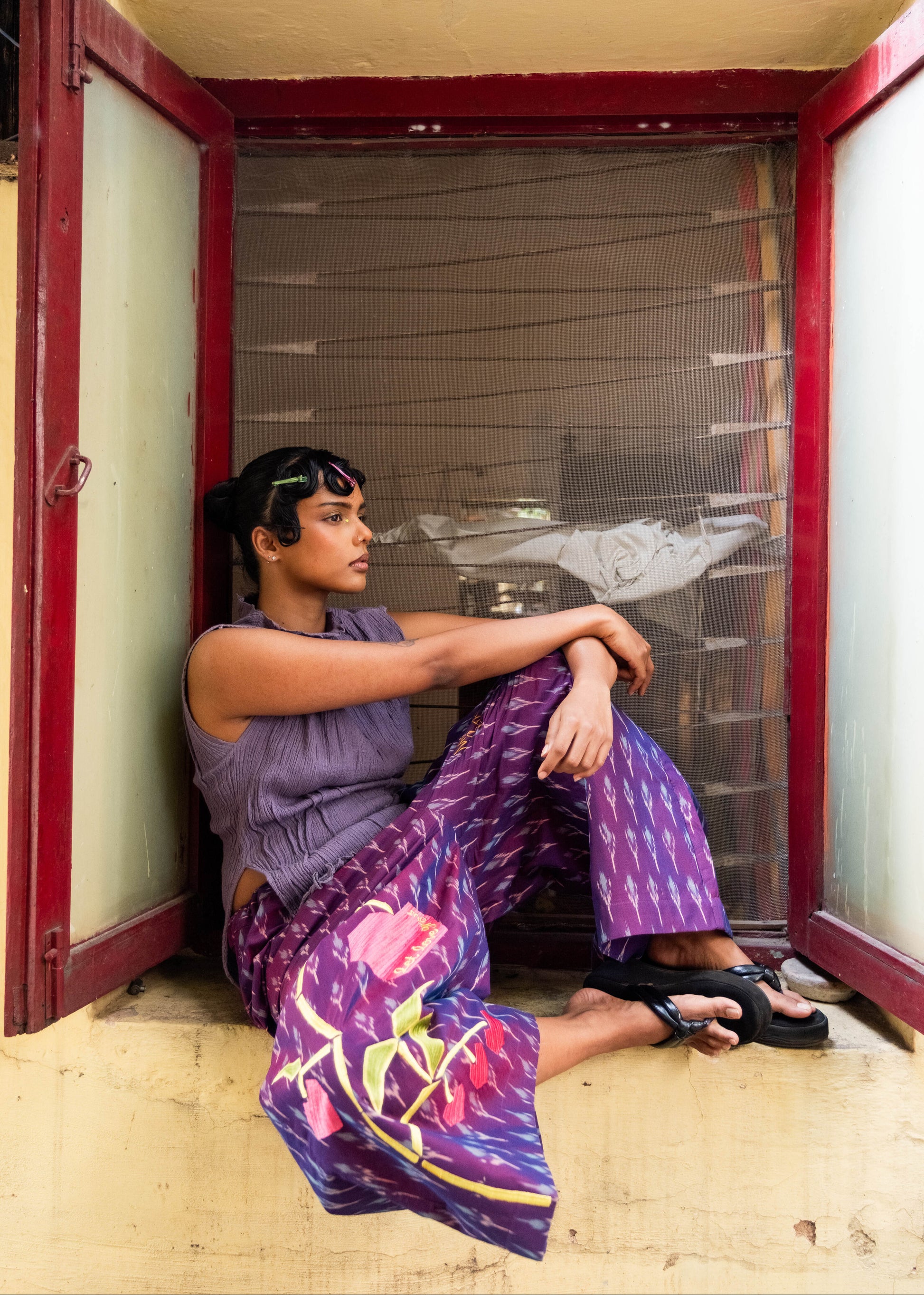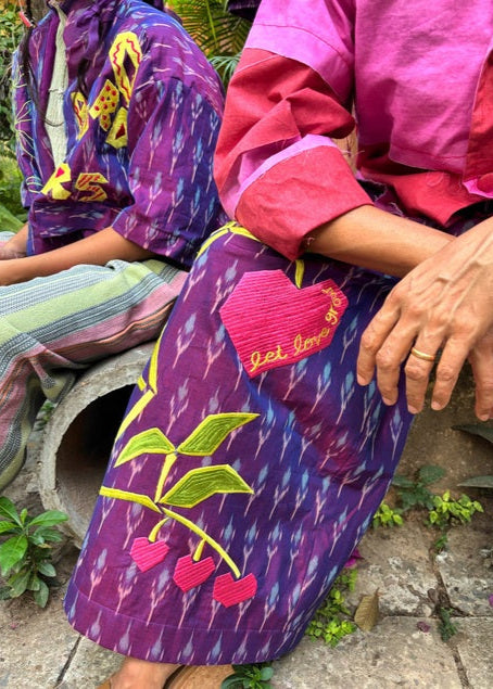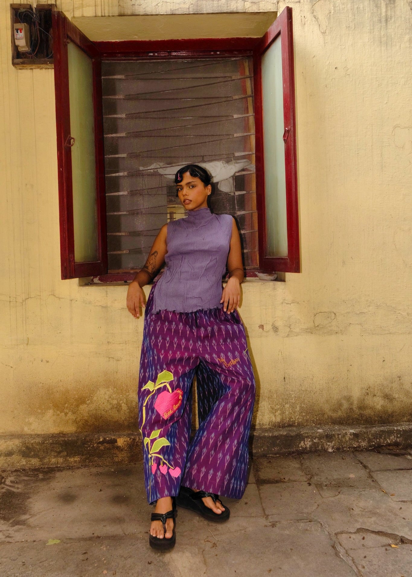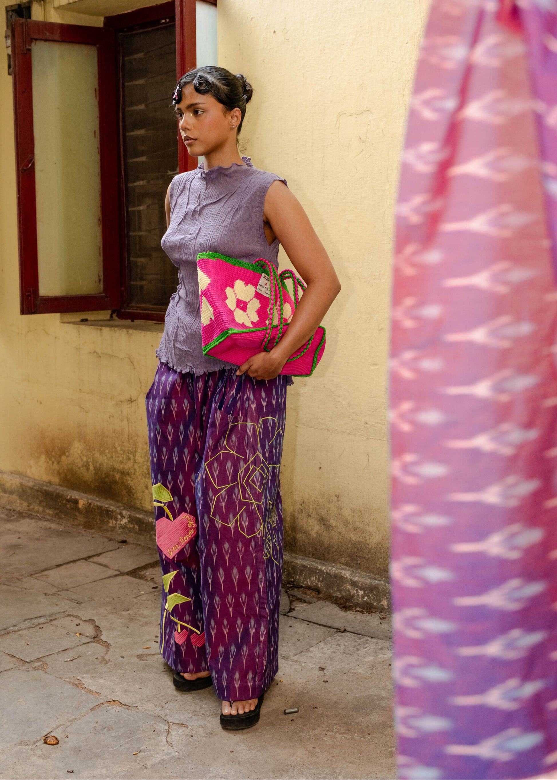 Our "Let Love Grow" Ikat Trousers, is the summer piece you just need to have! While the ikat fabric tells the story of ancestors m, the contrasting but lovable embroidery work on the piece depicts the fun loving energy we have for crafts 🌸