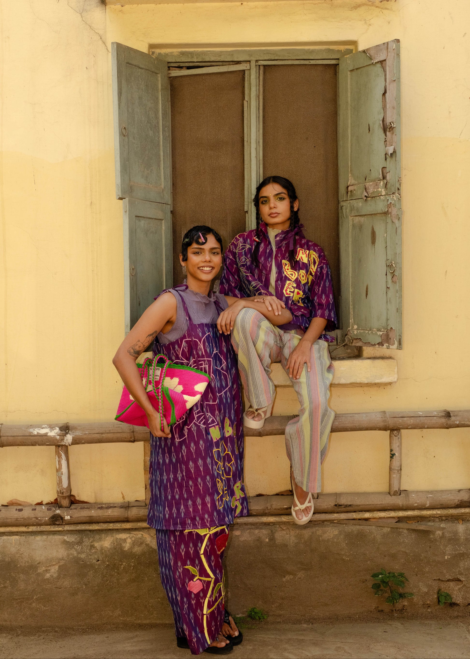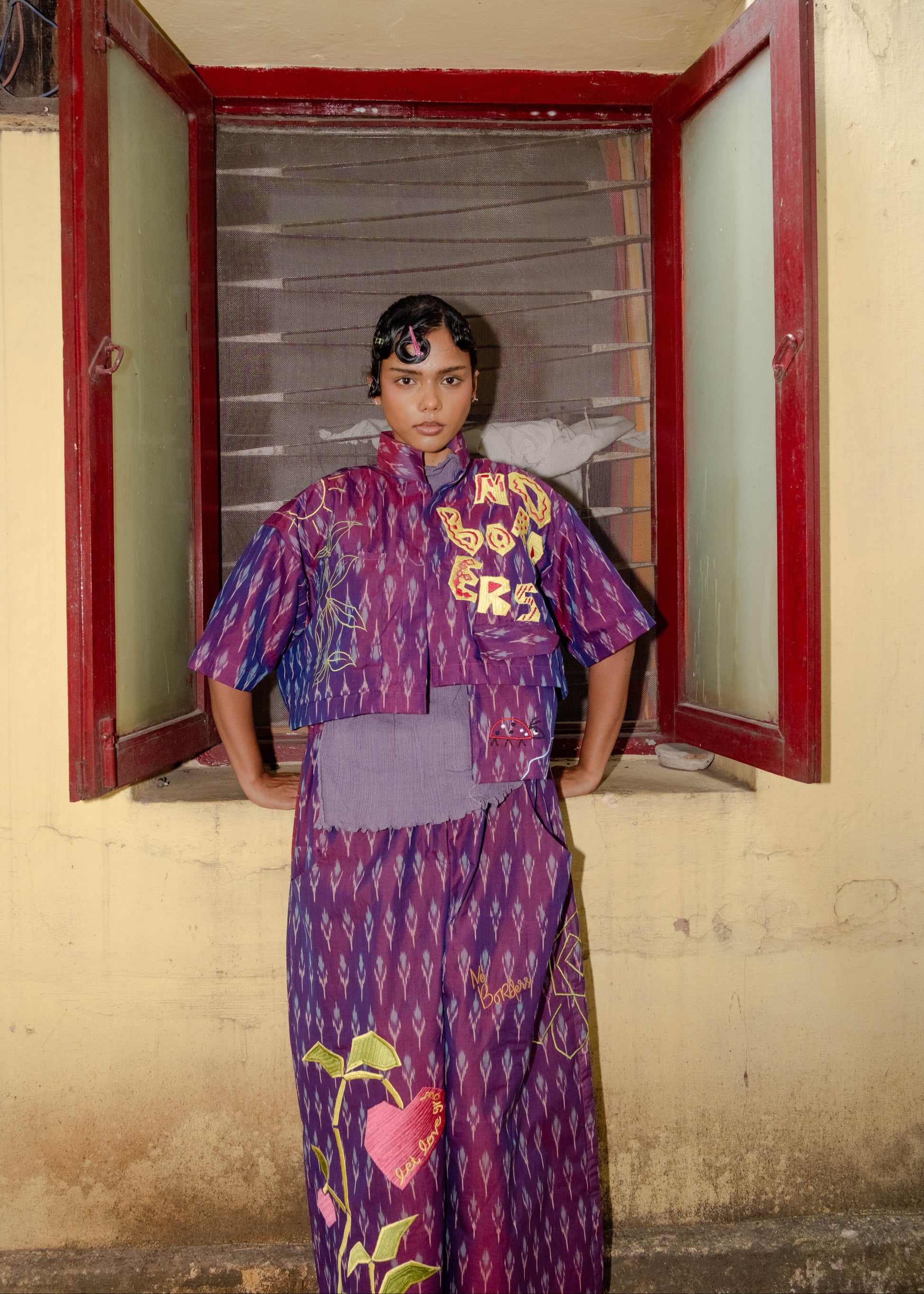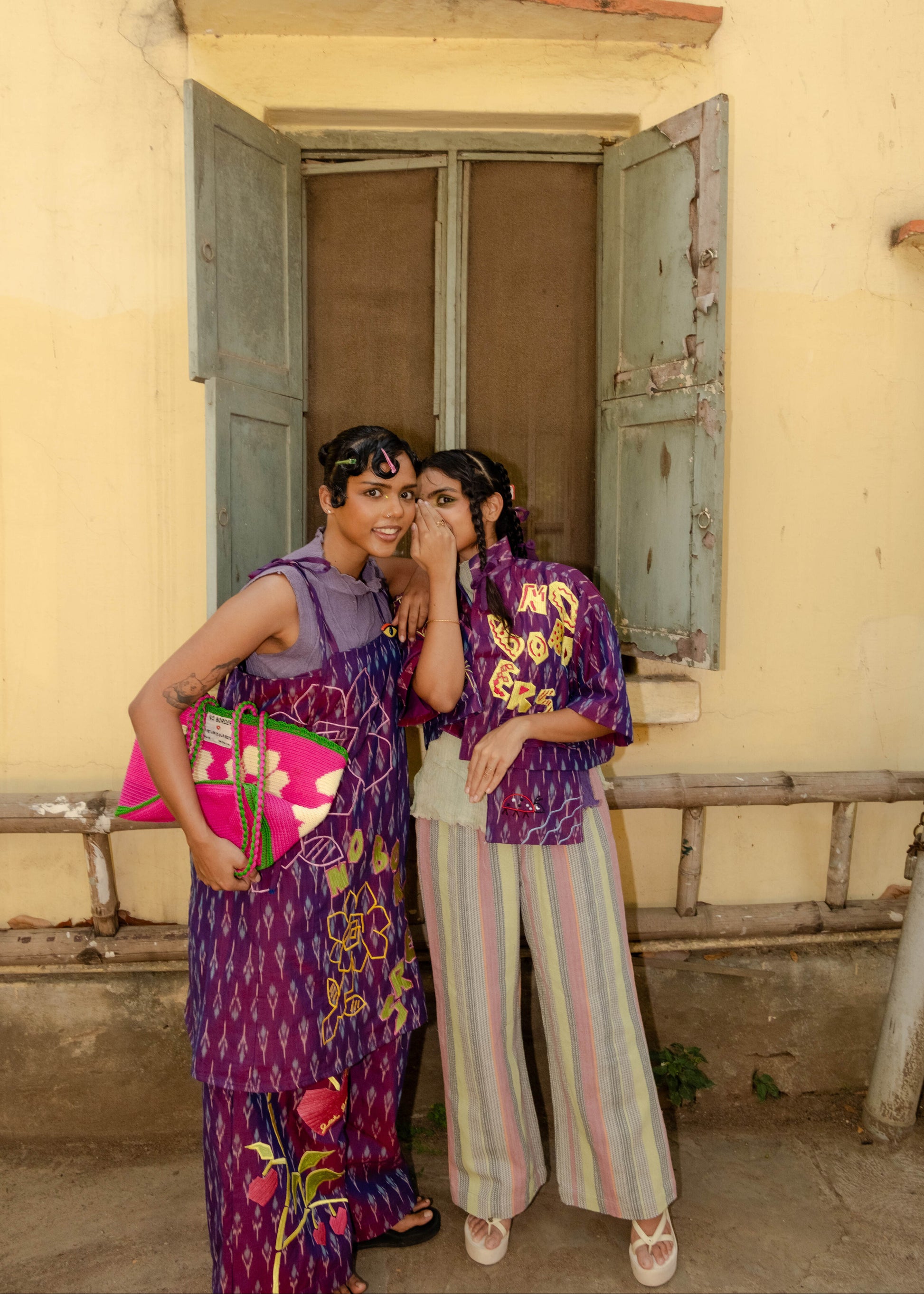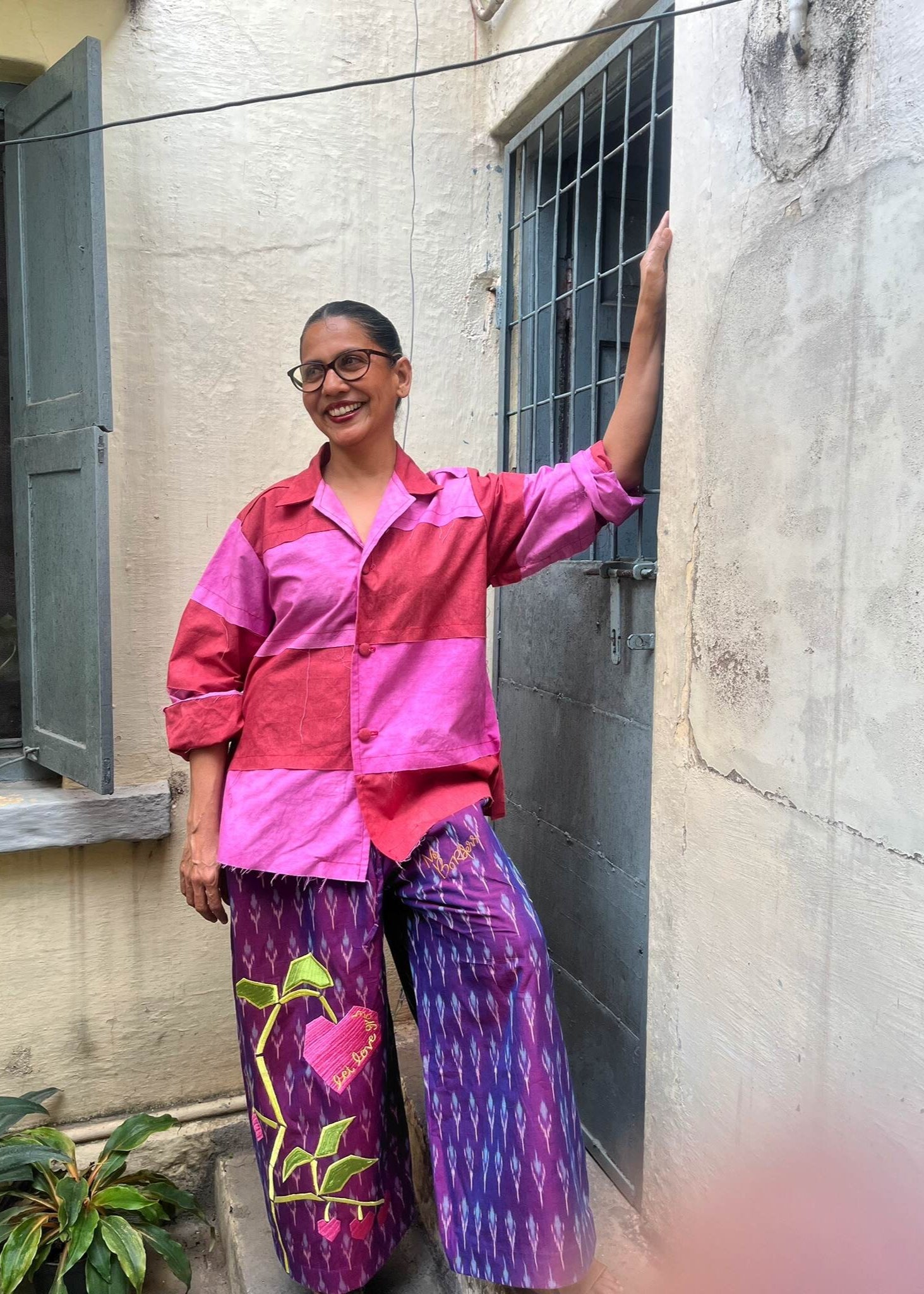 Our "Let Love Grow" Ikat Trousers, is the summer piece you just need to have! While the ikat fabric tells the story of ancestors m, the contrasting but lovable embroidery work on the piece depicts the fun loving energy we have for crafts 🌸