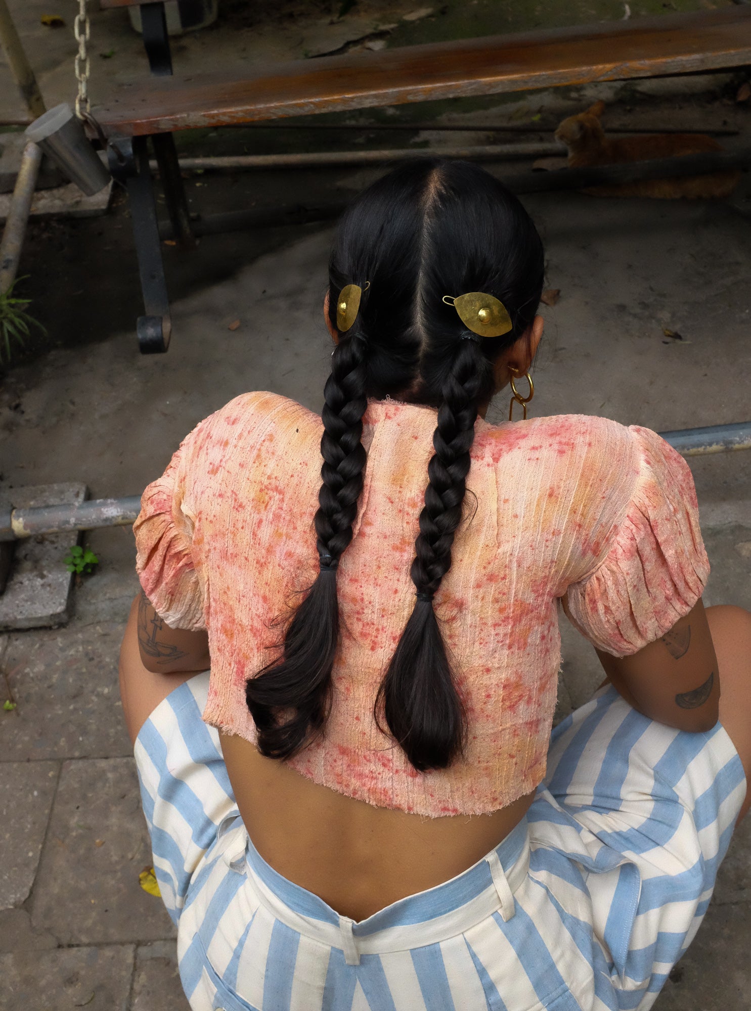 A unique copped top, bought to life by pink freckles and extracts of madder root.