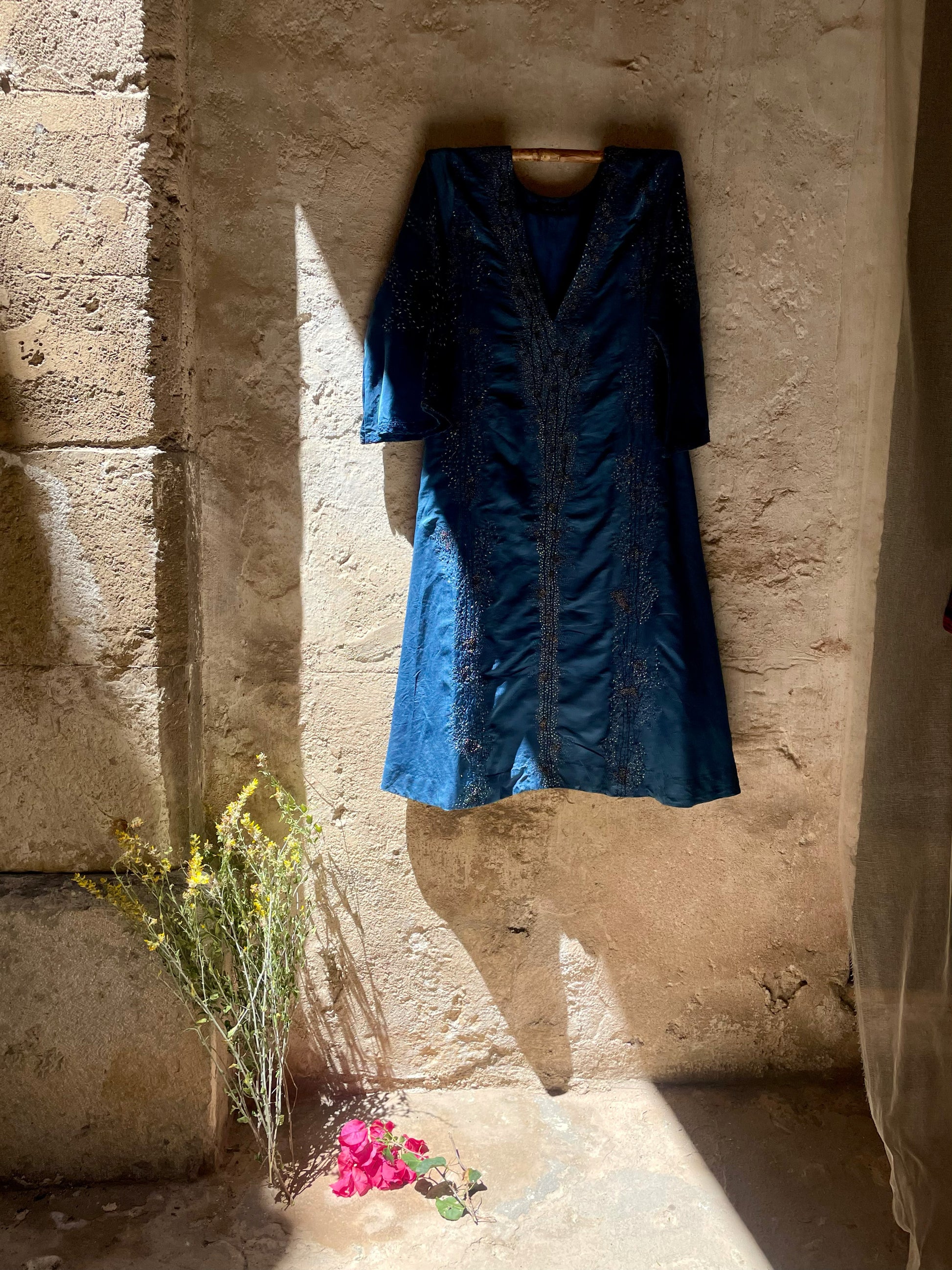 • Dry clean only to preserve the delicate zari embroidery and natural dye