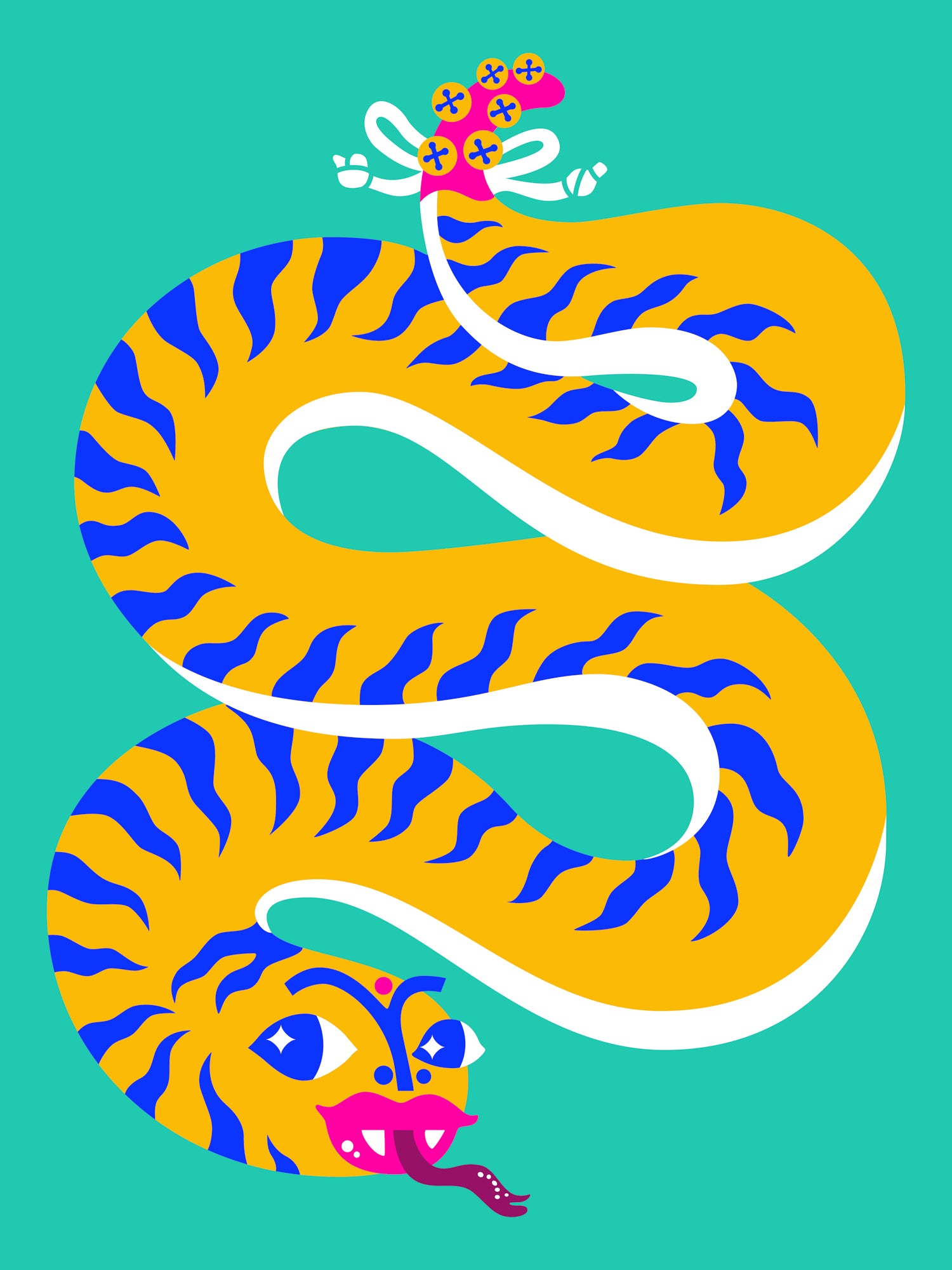 An interpretation of a dancing rattle snake, but instead with Ghungroo (Anklets with bells used in Indian dance forms)