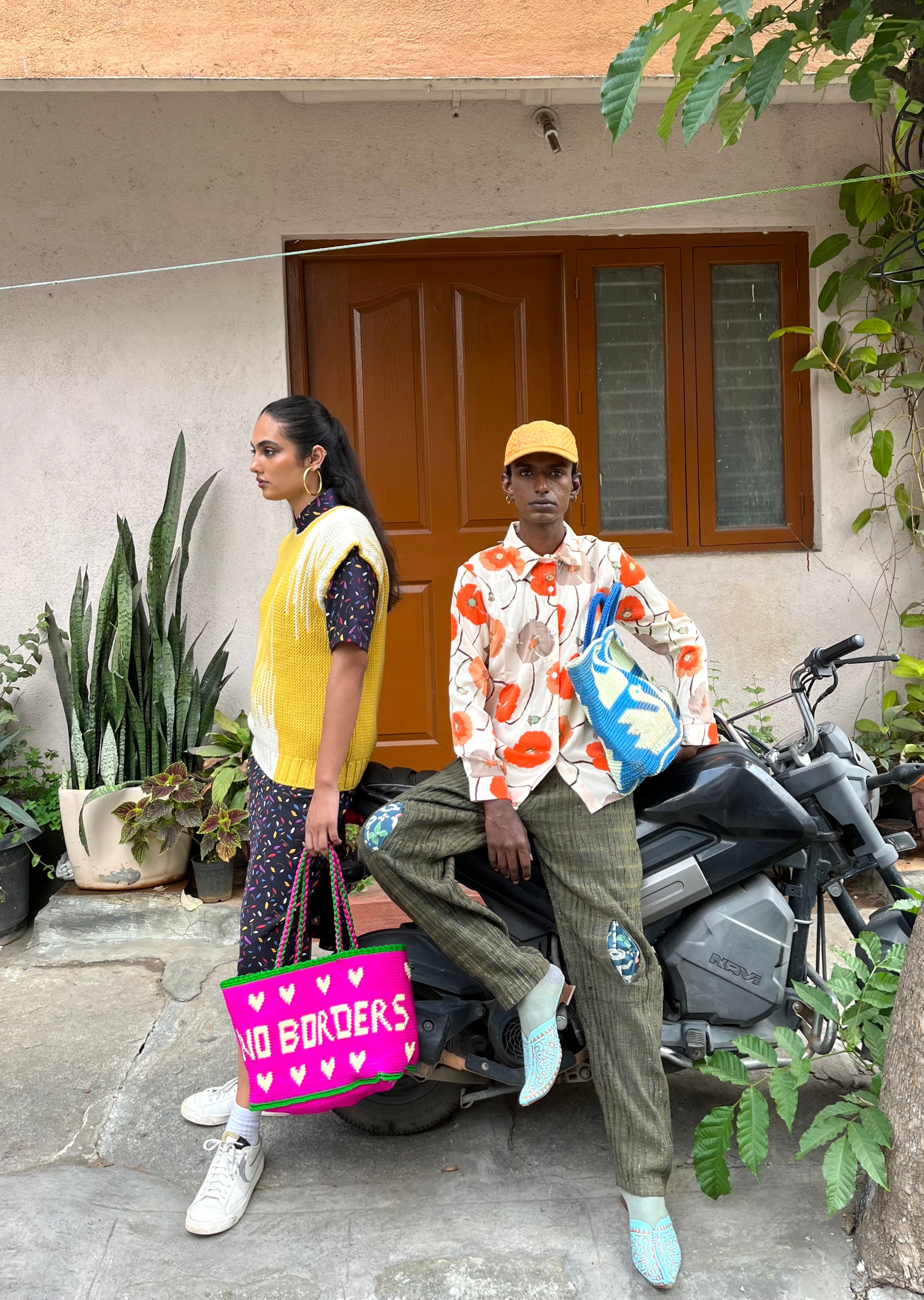 We created these very limited range of bright coloured market bags, purely handmade, when we visited the women of Navalgund, who have been practicing generational crafts in their tiny homes, for so many years🌷🌷We got acquainted to these women by the help of our most favourite Navalgund Dhurrie artisans, Akkamma and Farzana, who have been inspiring the entire village to create art and be independent women🥀