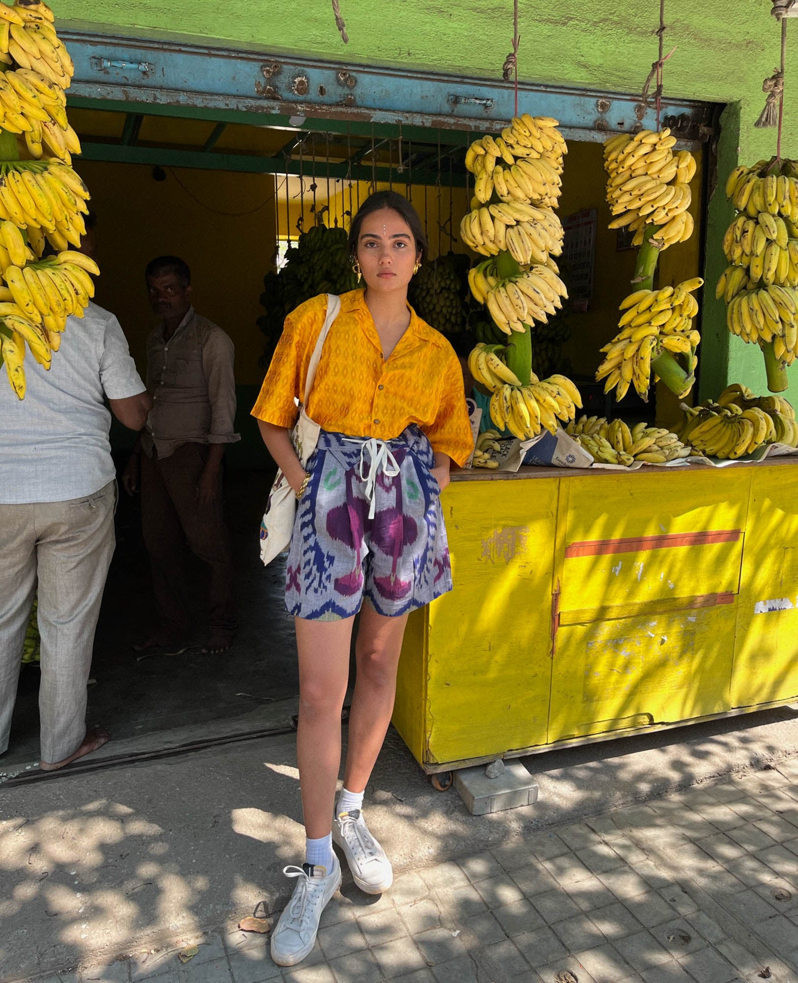 For this collection, we worked with a young artisan named Chandana, who has been weaving Ikat fabrics since she was 16, in Telangana. A state that is well known for Koy's Ikat. She soon developed an interest, and by the age of 18, she was creating her own original Ikat patterns, redesigning the traditional ways of weaving.