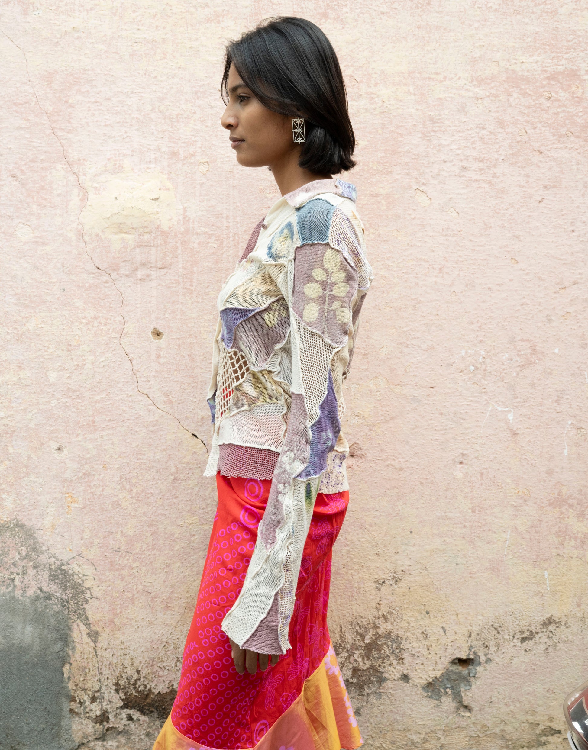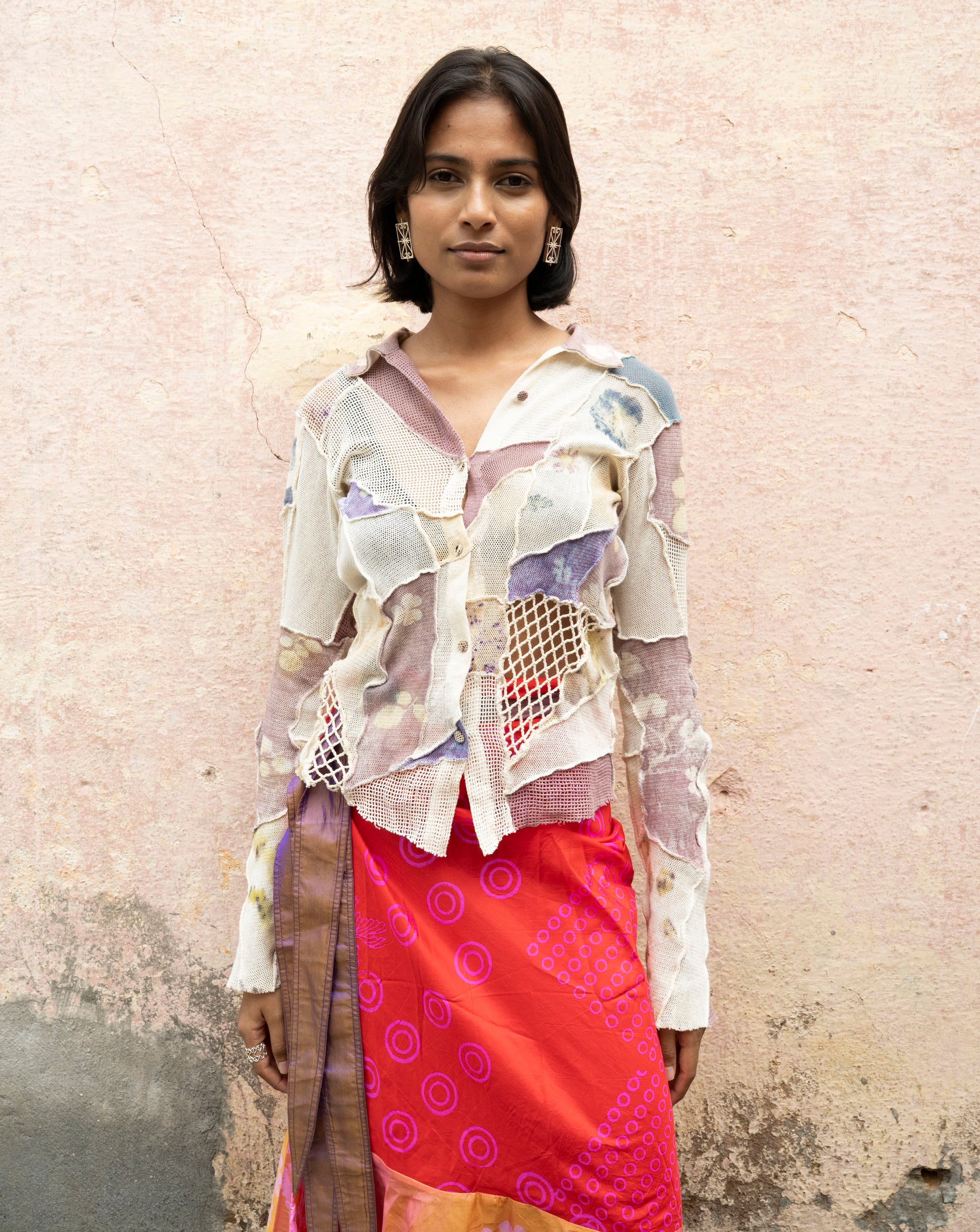 A one-of-a kind shirt, made by assembling pieces from our natural dyeing experiments. Small, big; like pieces from a puzzle - come together to make this rare collectible.
