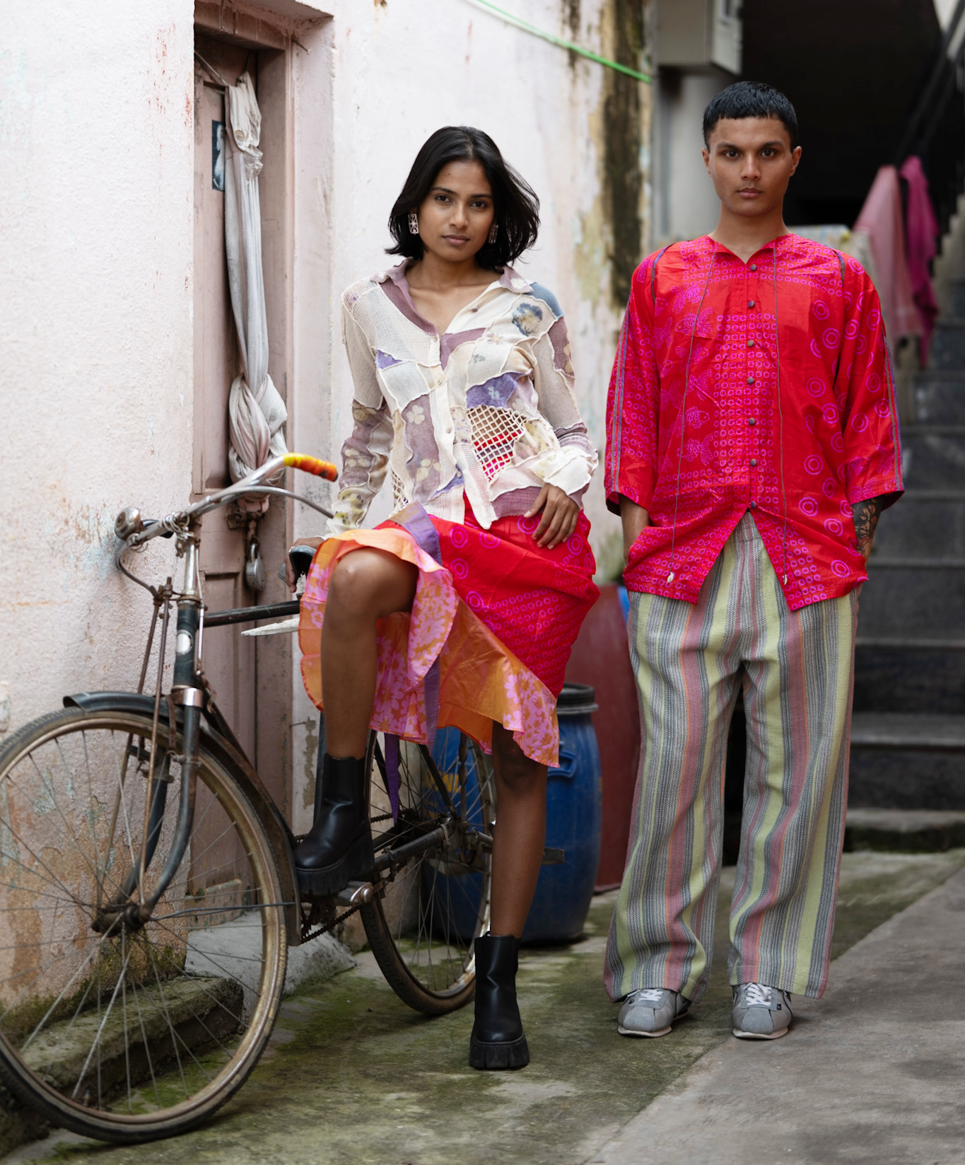 All the fabrics that give this garment a unique character are individually dyed by hand, using foraged leaves, native plants, sappanwood, indigo and other plant extracts.