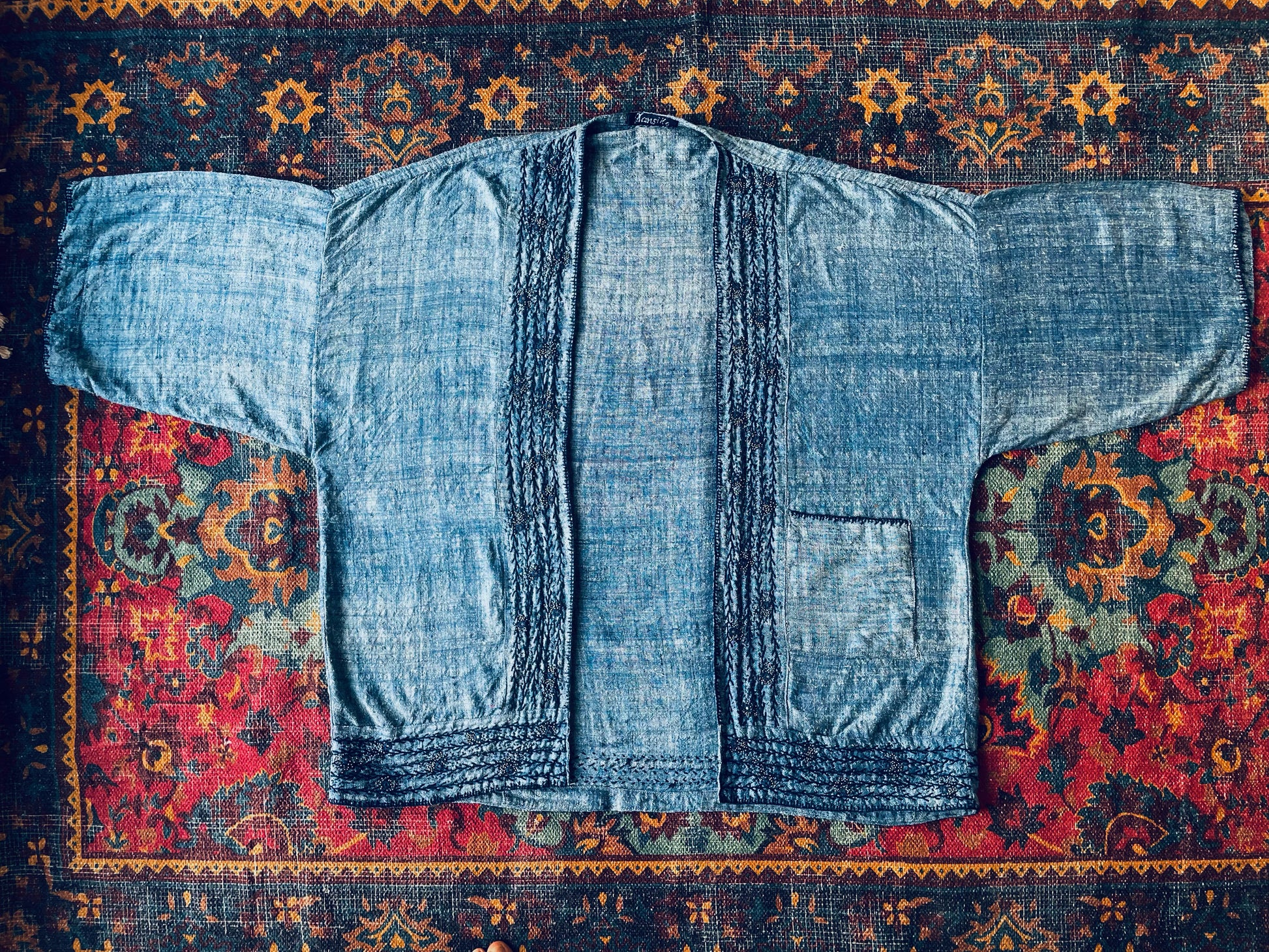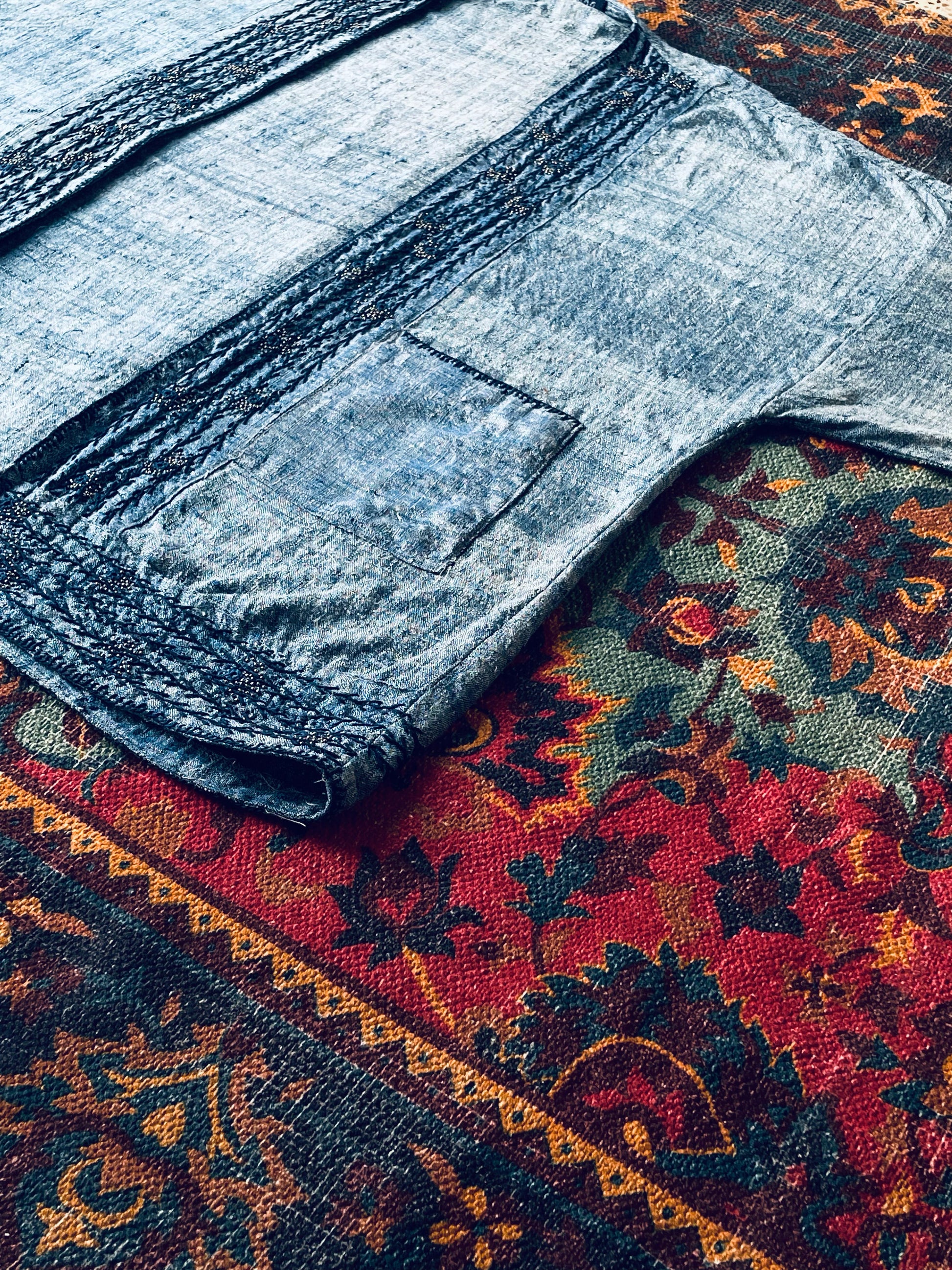 • Dry clean only to protect the natural dyes and delicate hand embroidery