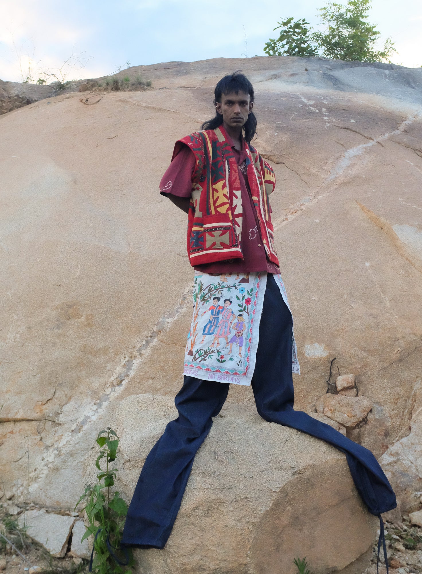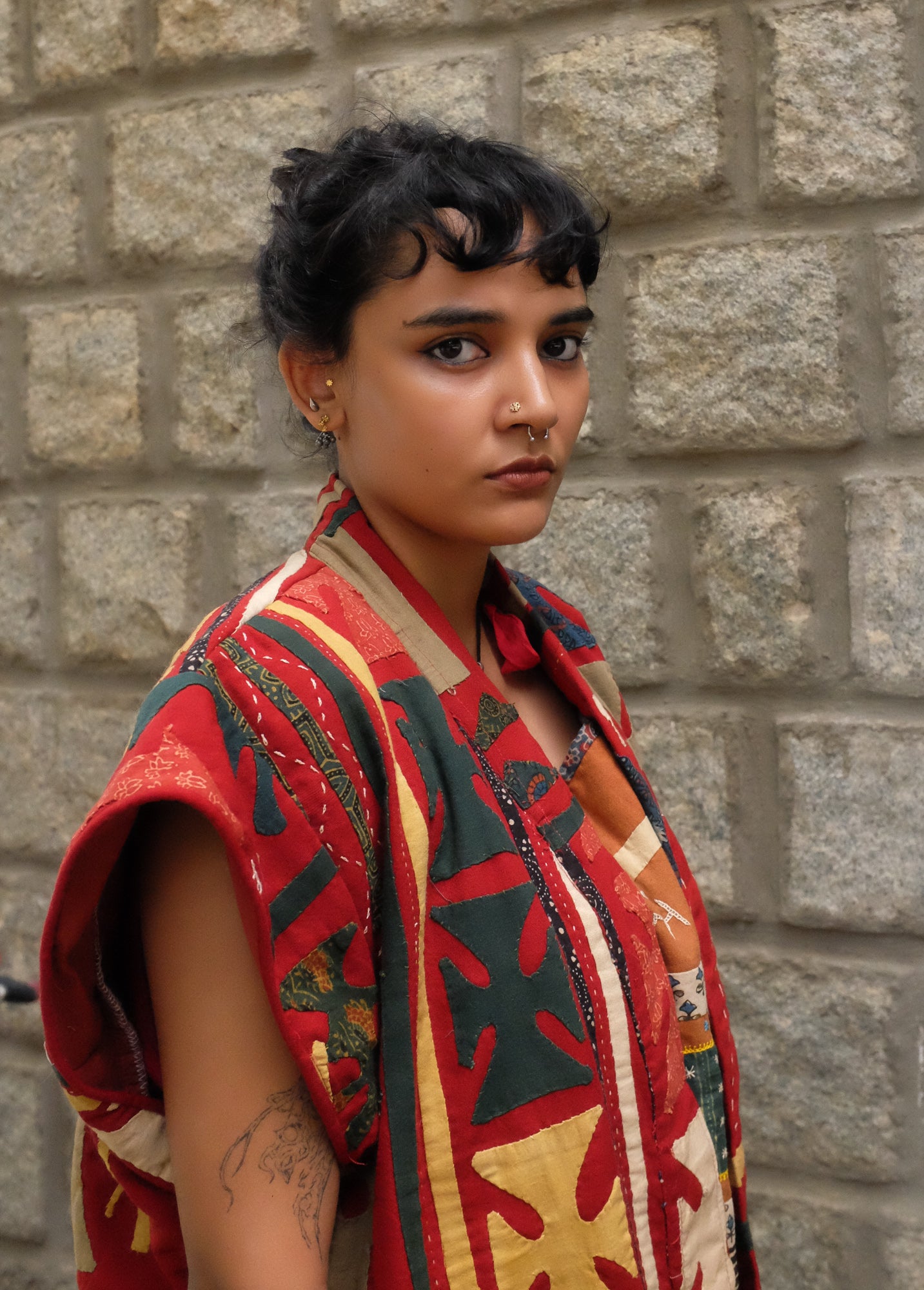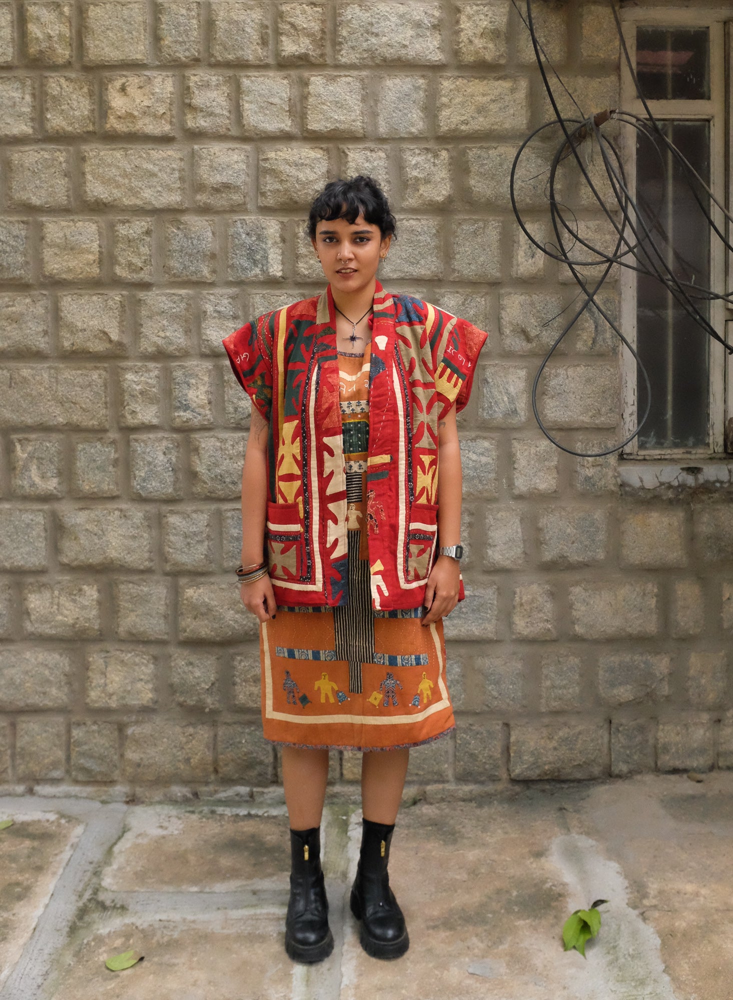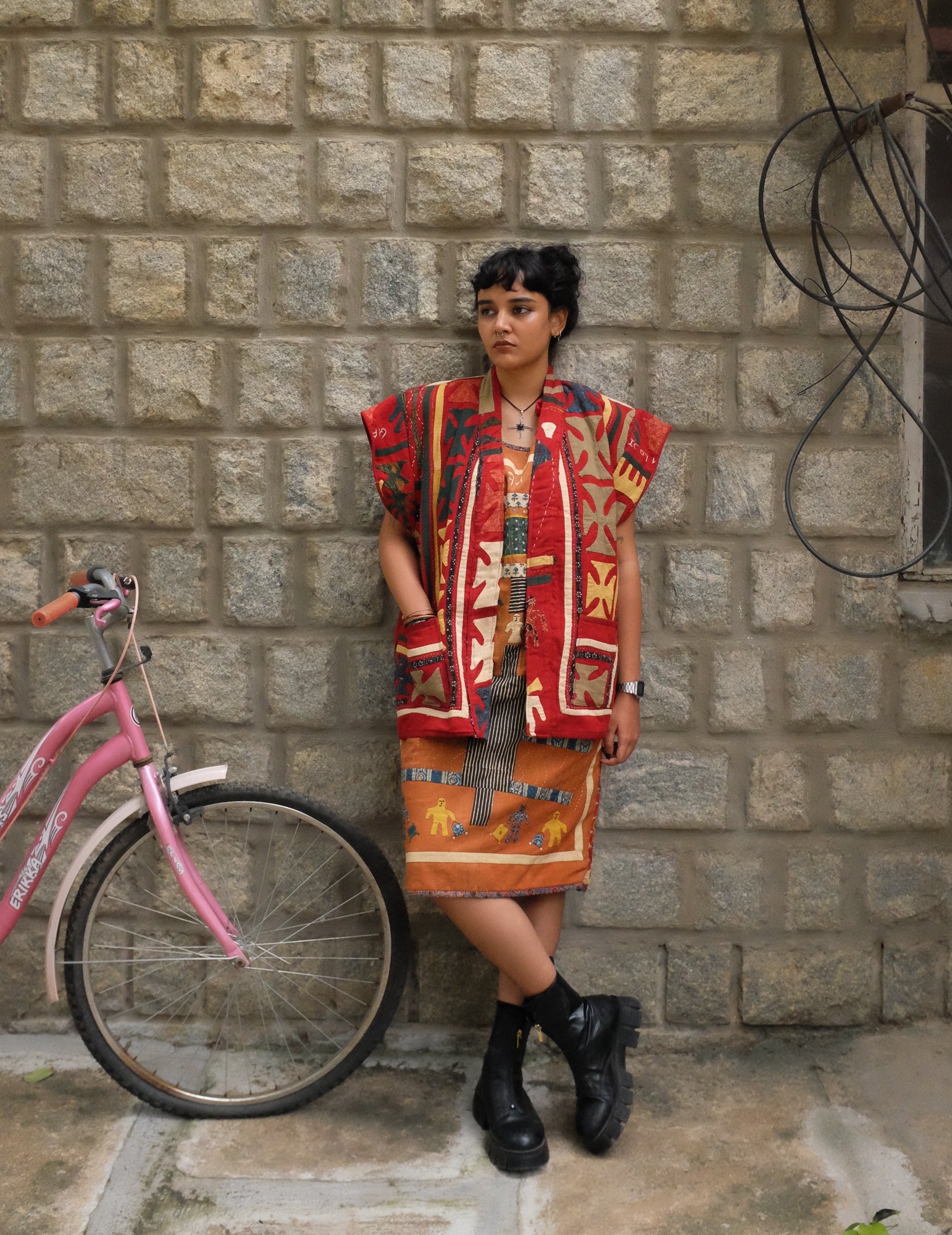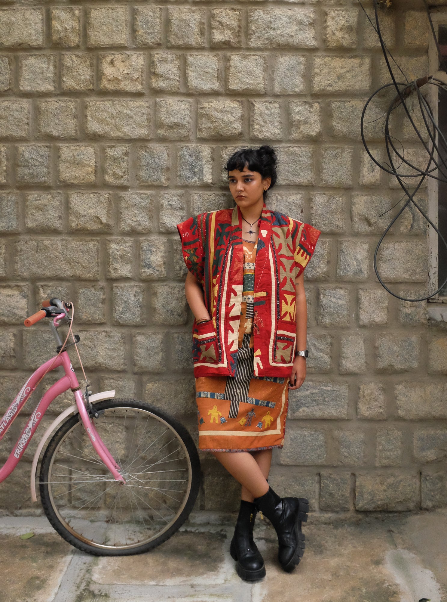 Upcycled Art: Originally designed as wall hangings, reimagined and repurposed into a unique jacket.