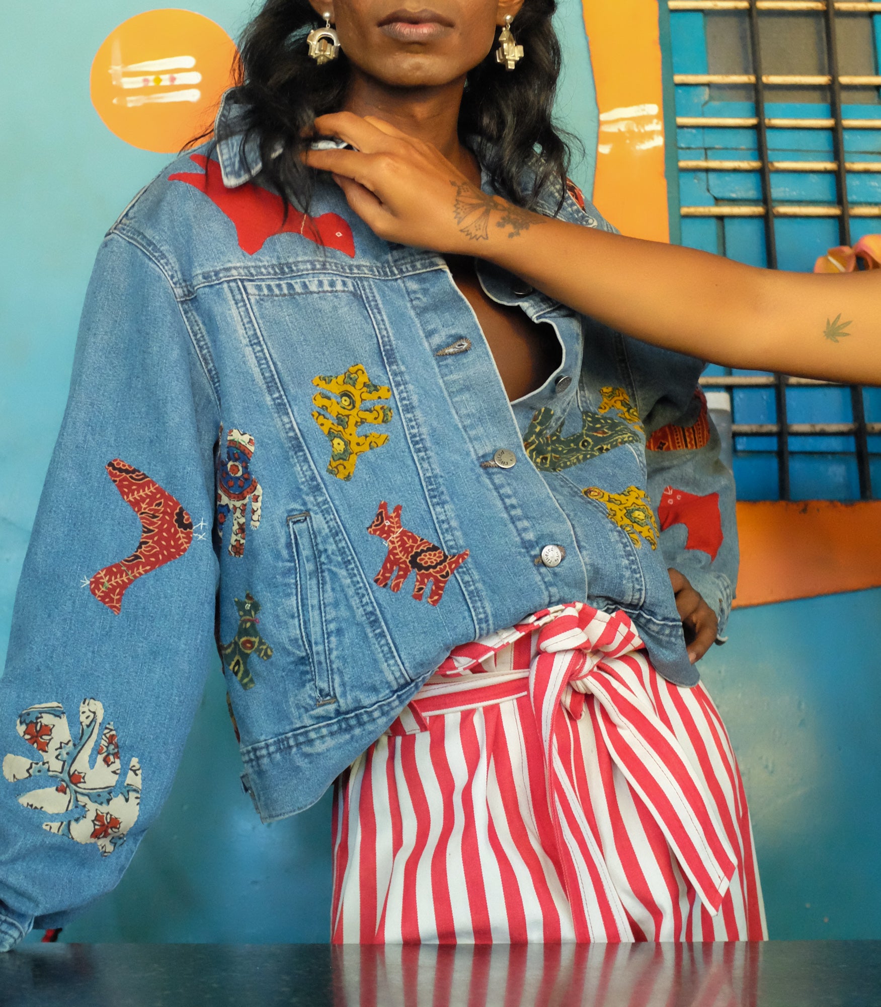 Introducing our latest collection of upcycled vintage denim jackets, crafted with love and intention by our talented artisan friends from Kutch, Gujarat. Each jacket is a unique masterpiece, showcasing the ancient craft of Applique patchwork. Adorned with the cutest little motifs that depict everyday scenes from village life, these jackets are not just fashion statements but stories waiting to be told šø
