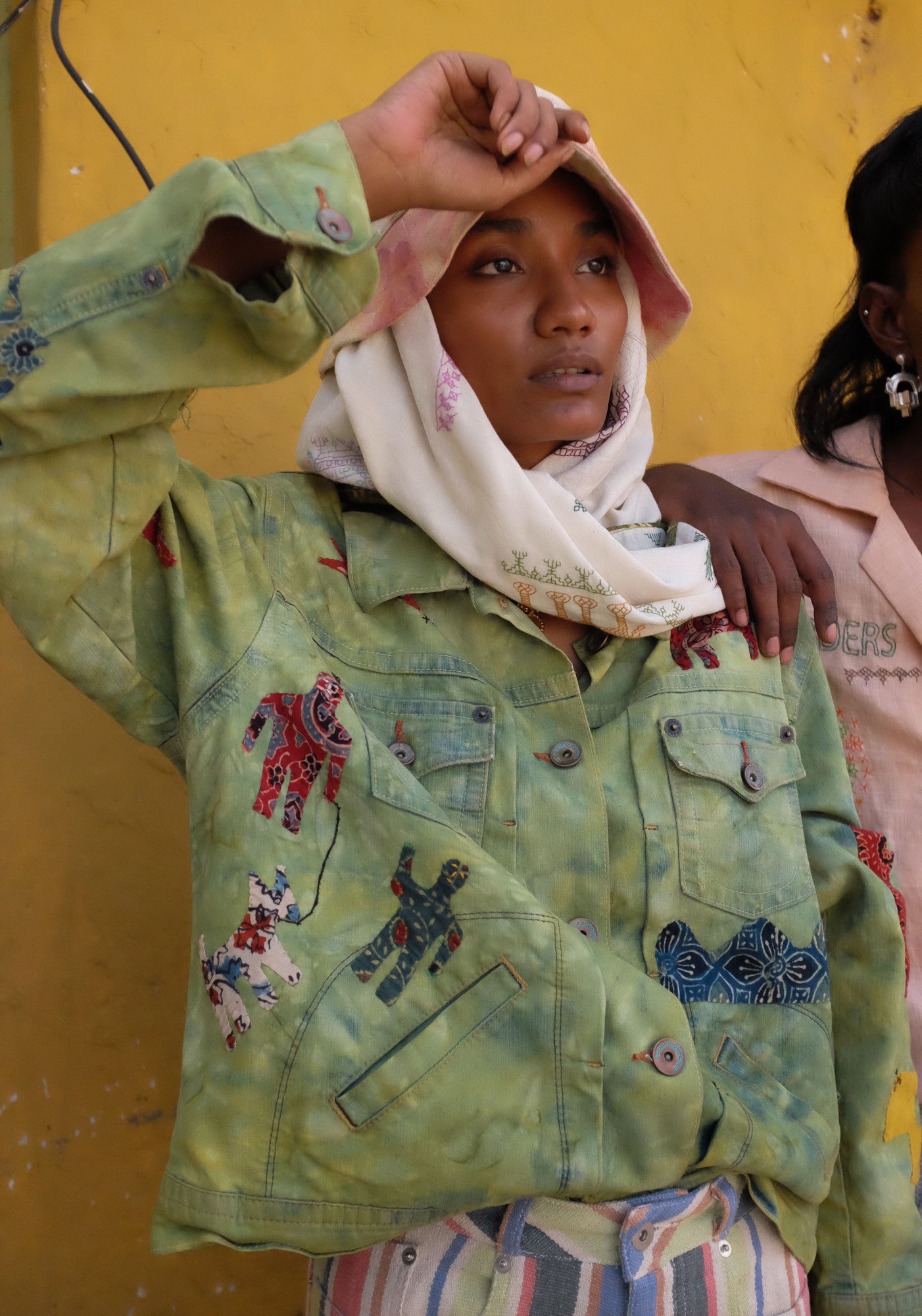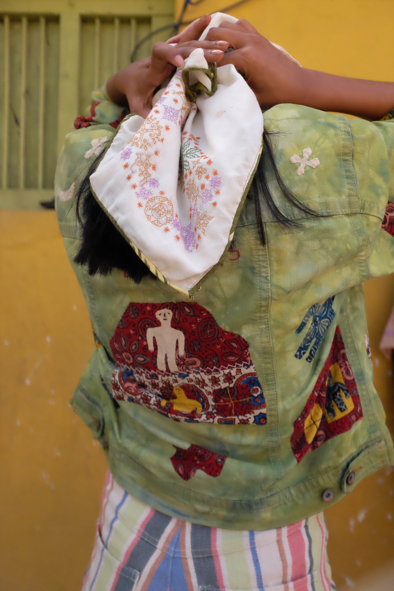 Kala Raksha Upcycled Green Denim Applique Jacket